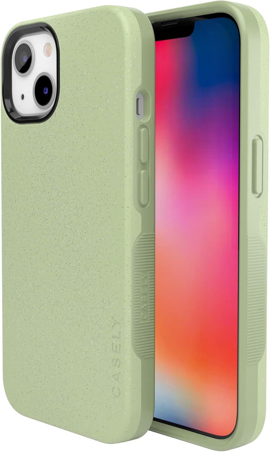 Casely iPhone 13 Case | Twilight Flora | Moody Monochrome | Bold Protective Design | Compatible with MagSafe(Kiwi Kiss | Matcha Green)