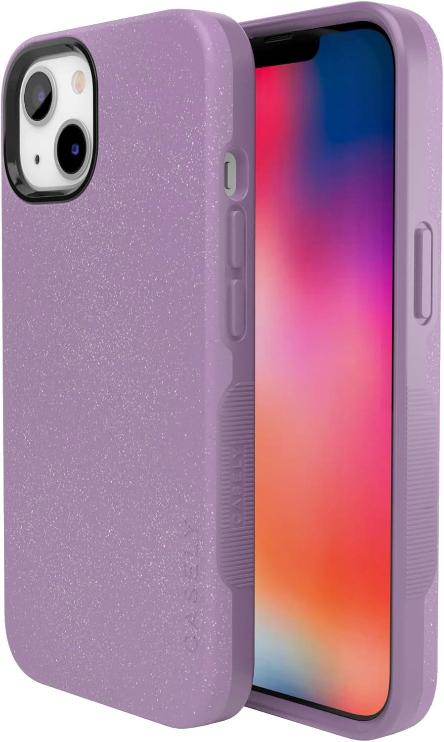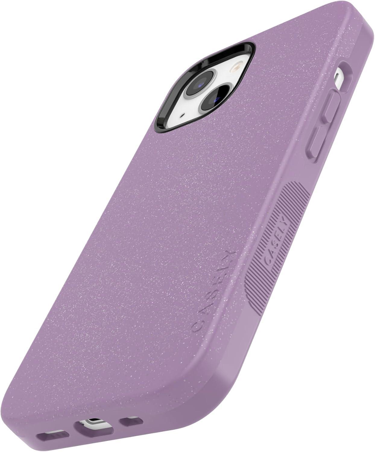 Casely iPhone 13 Case | Twilight Flora | Moody Monochrome | Bold Protective Design | Compatible with MagSafe(Lavender Waves | Purple Shimmer)