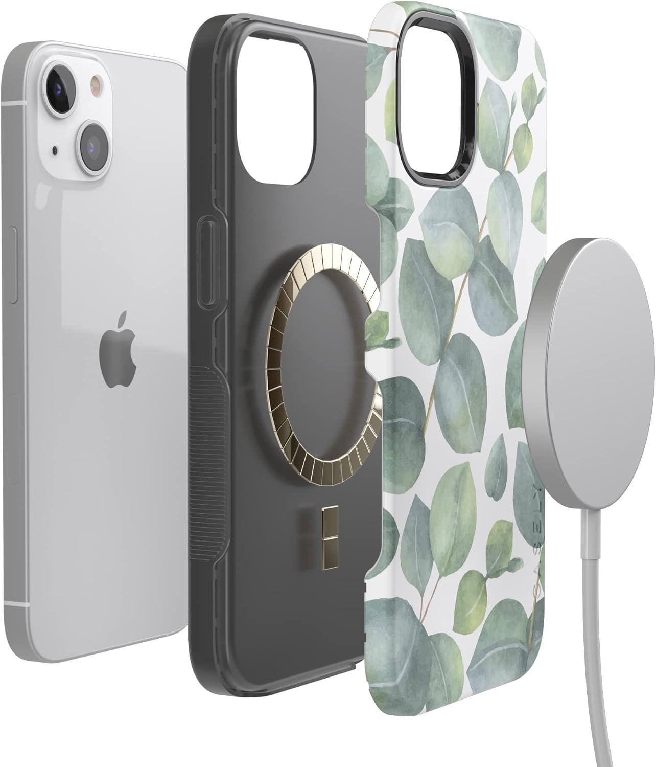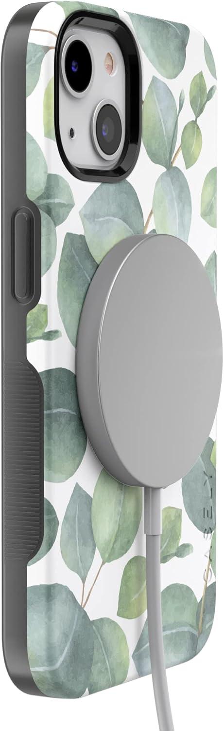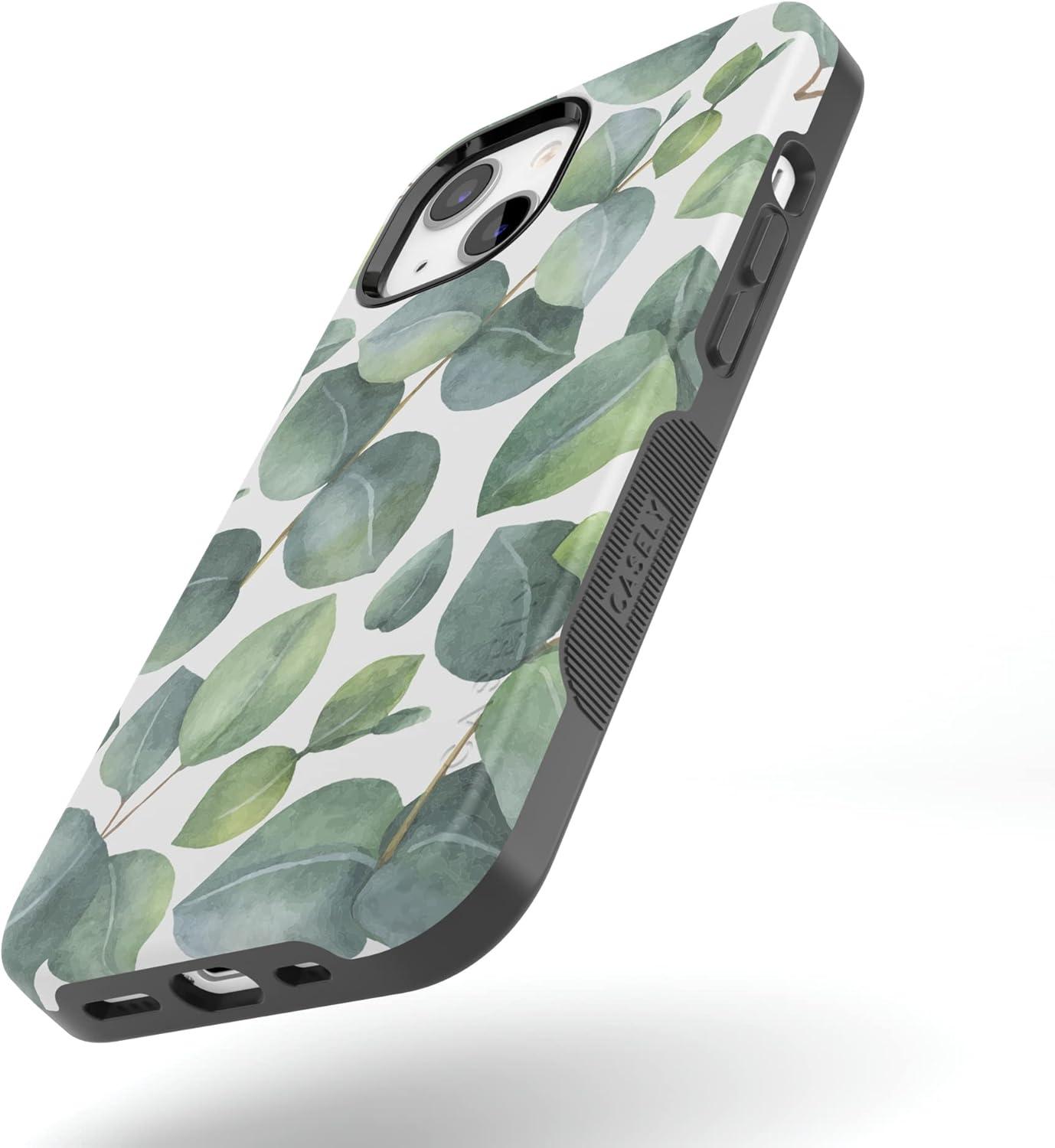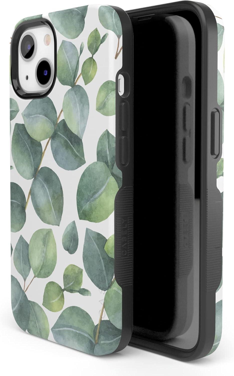 Casely iPhone 13 Case | Twilight Flora | Moody Monochrome | Bold Protective Design | Compatible with MagSafe(Leaf Me Alone | Green Floral)