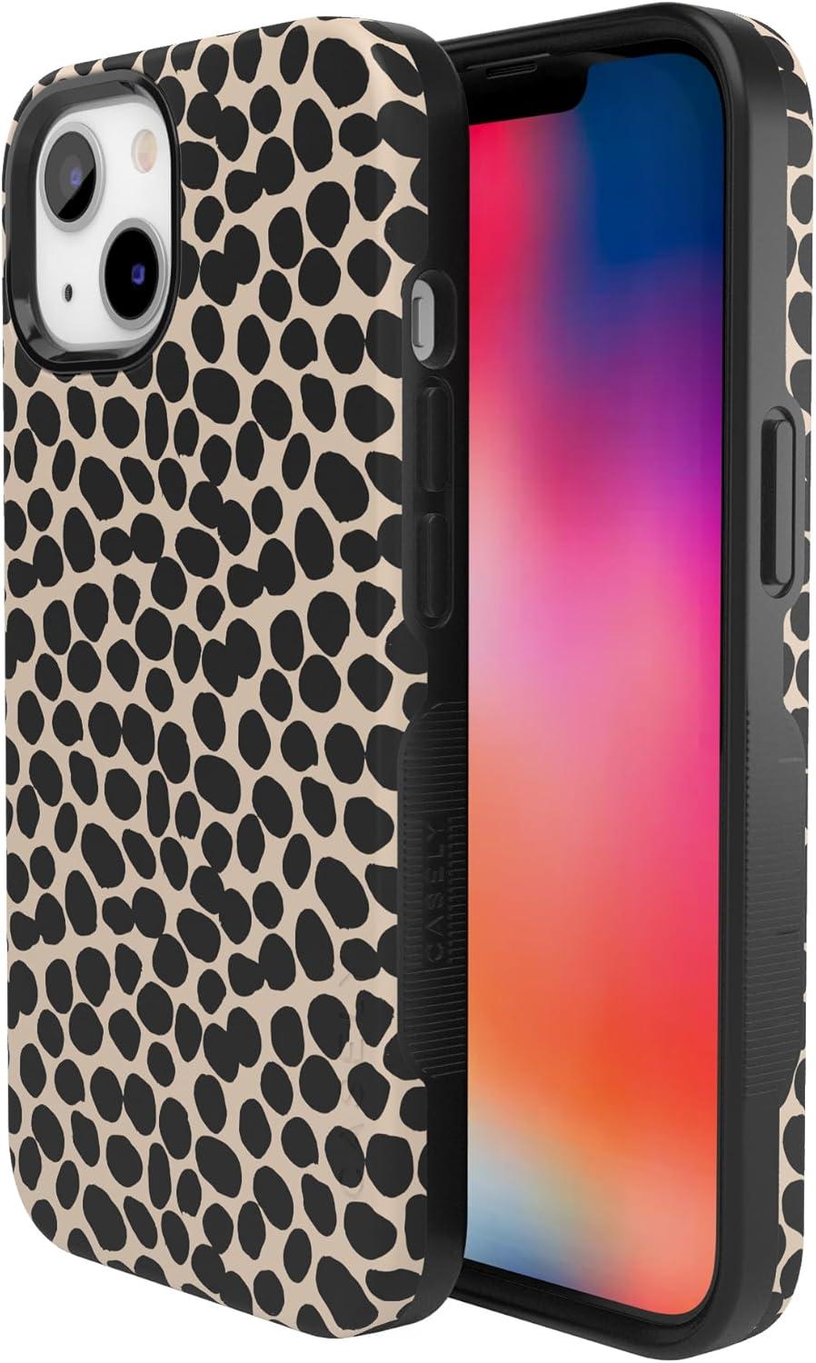 Casely iPhone 13 Case | Twilight Flora | Moody Monochrome | Bold Protective Design | Compatible with MagSafe(Lost in Spots | Cheetah Print)