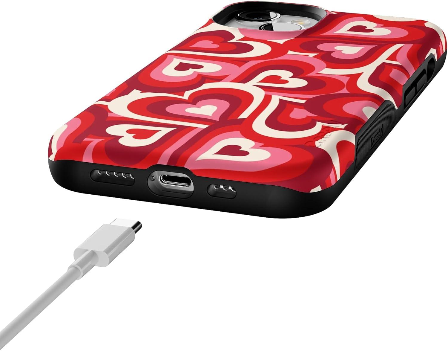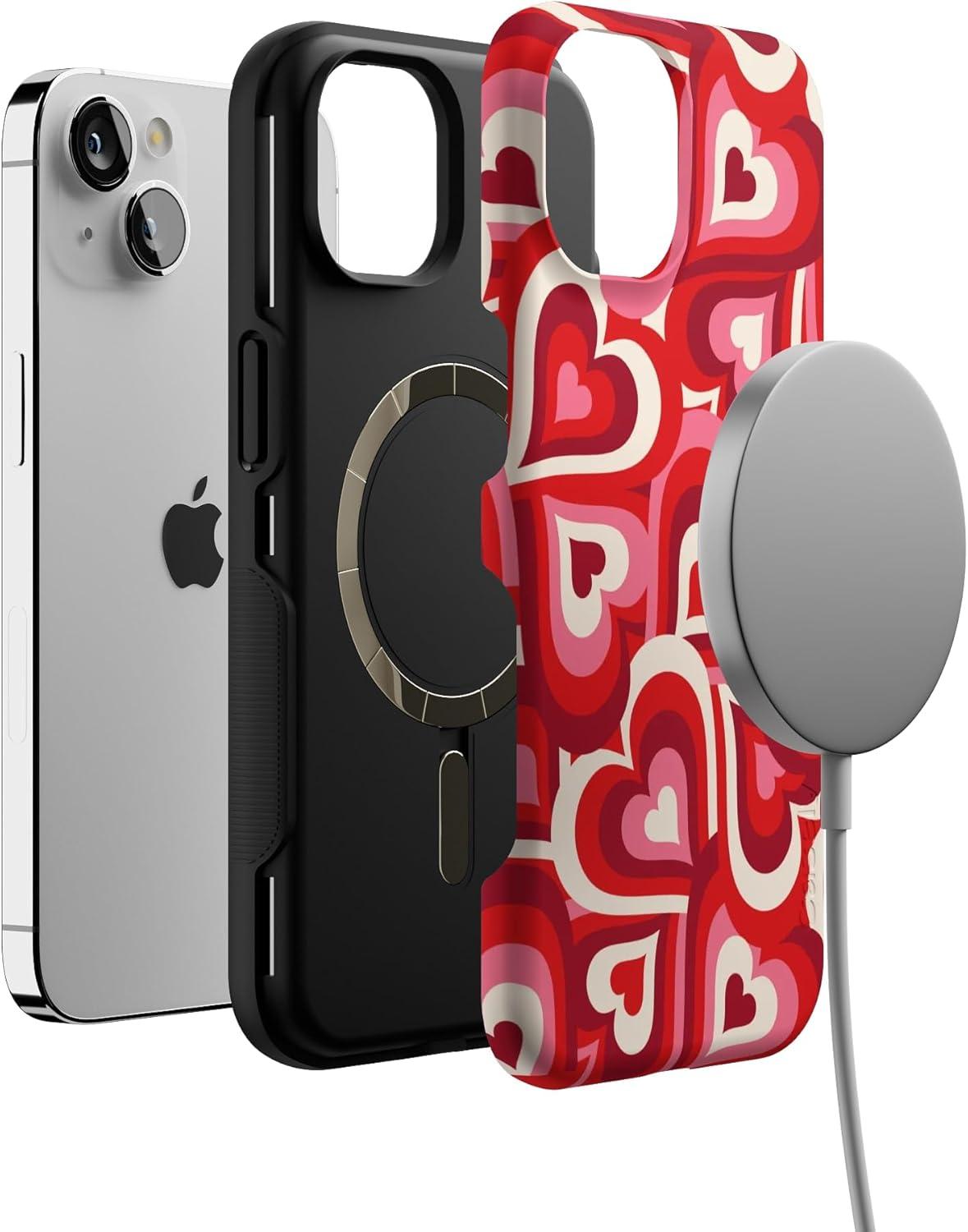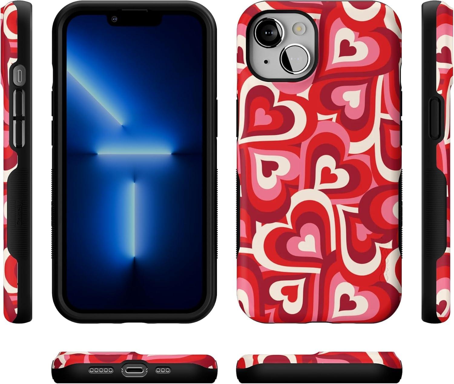 Casely iPhone 13 Case | Twilight Flora | Moody Monochrome | Bold Protective Design | Compatible with MagSafe(Love Song Remix | Ombre Hearts)
