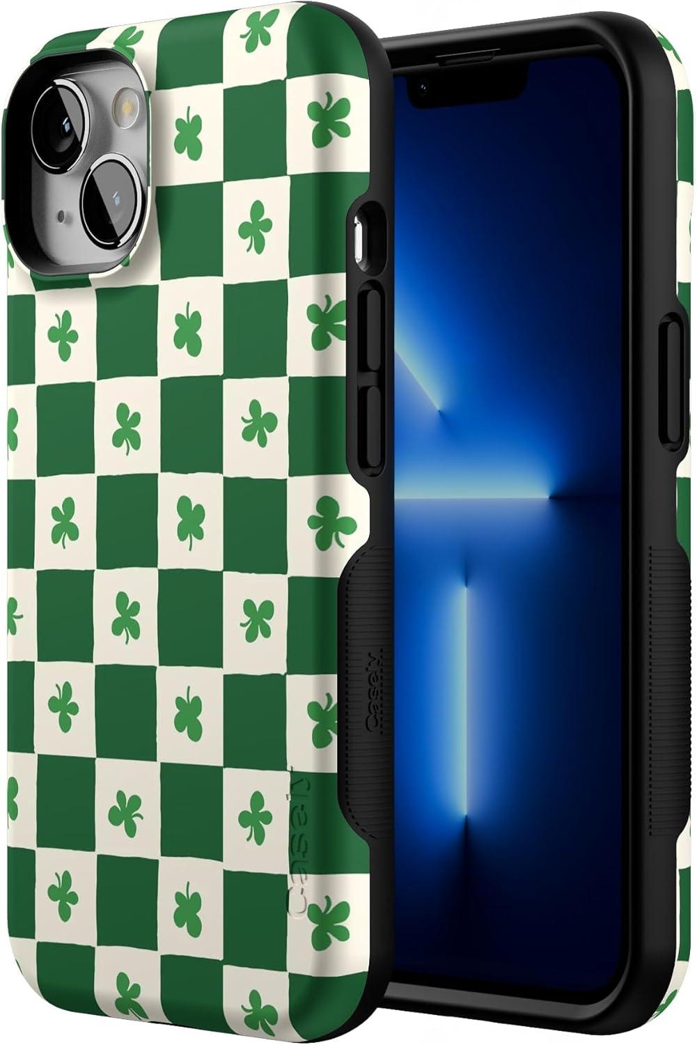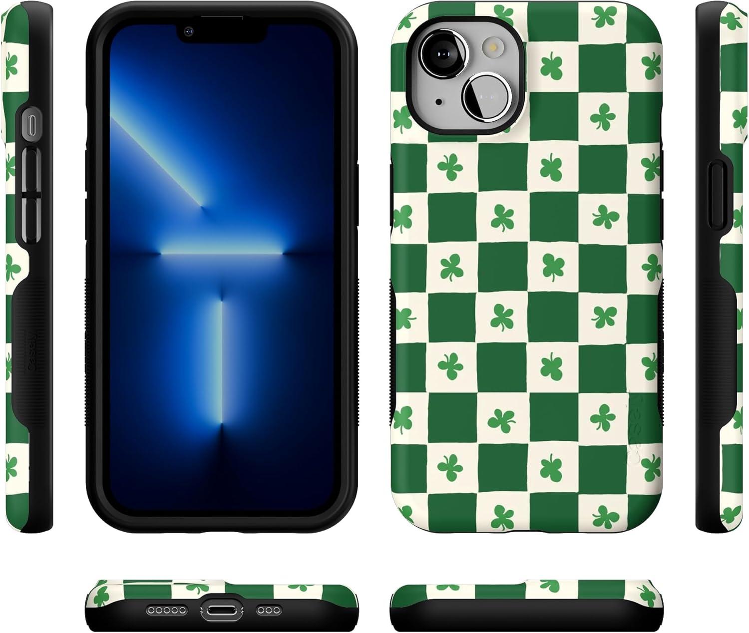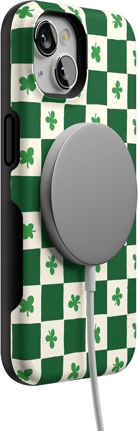 Casely iPhone 13 Case | Twilight Flora | Moody Monochrome | Bold Protective Design | Compatible with MagSafe(Lucky You | Shamrock)