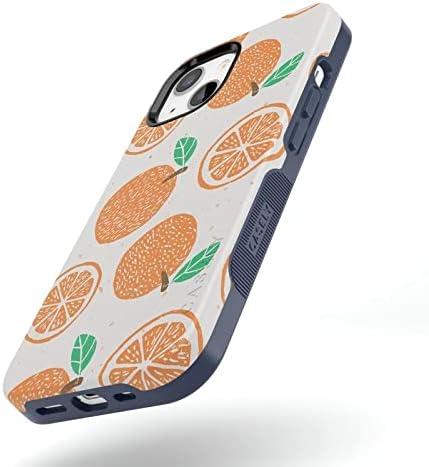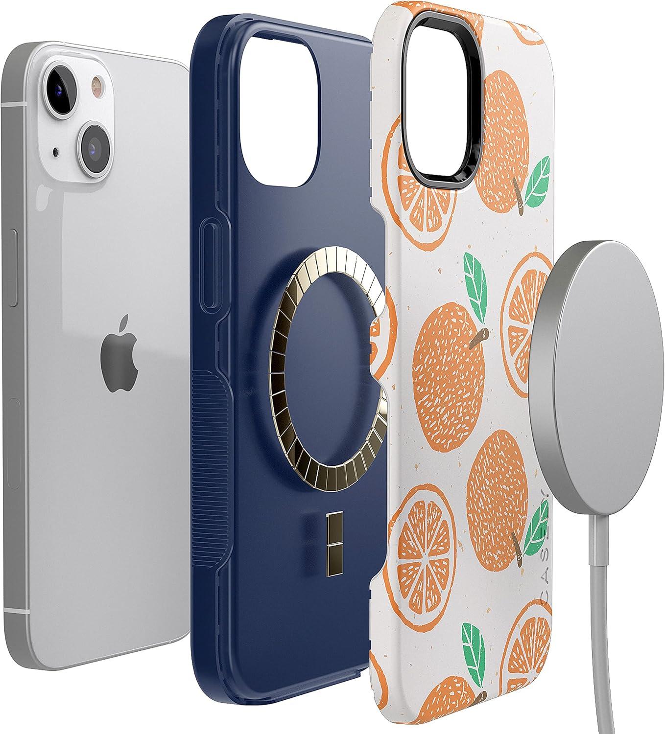 Casely iPhone 13 Case | Twilight Flora | Moody Monochrome | Bold Protective Design | Compatible with MagSafe(Main Squeeze | Orange Stamped)