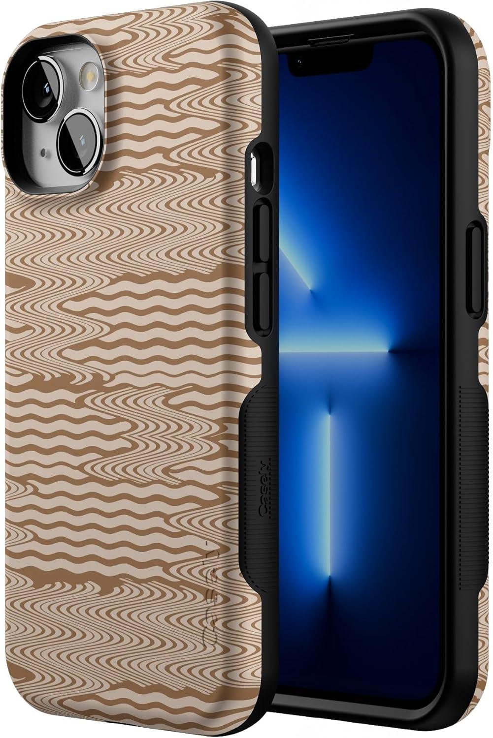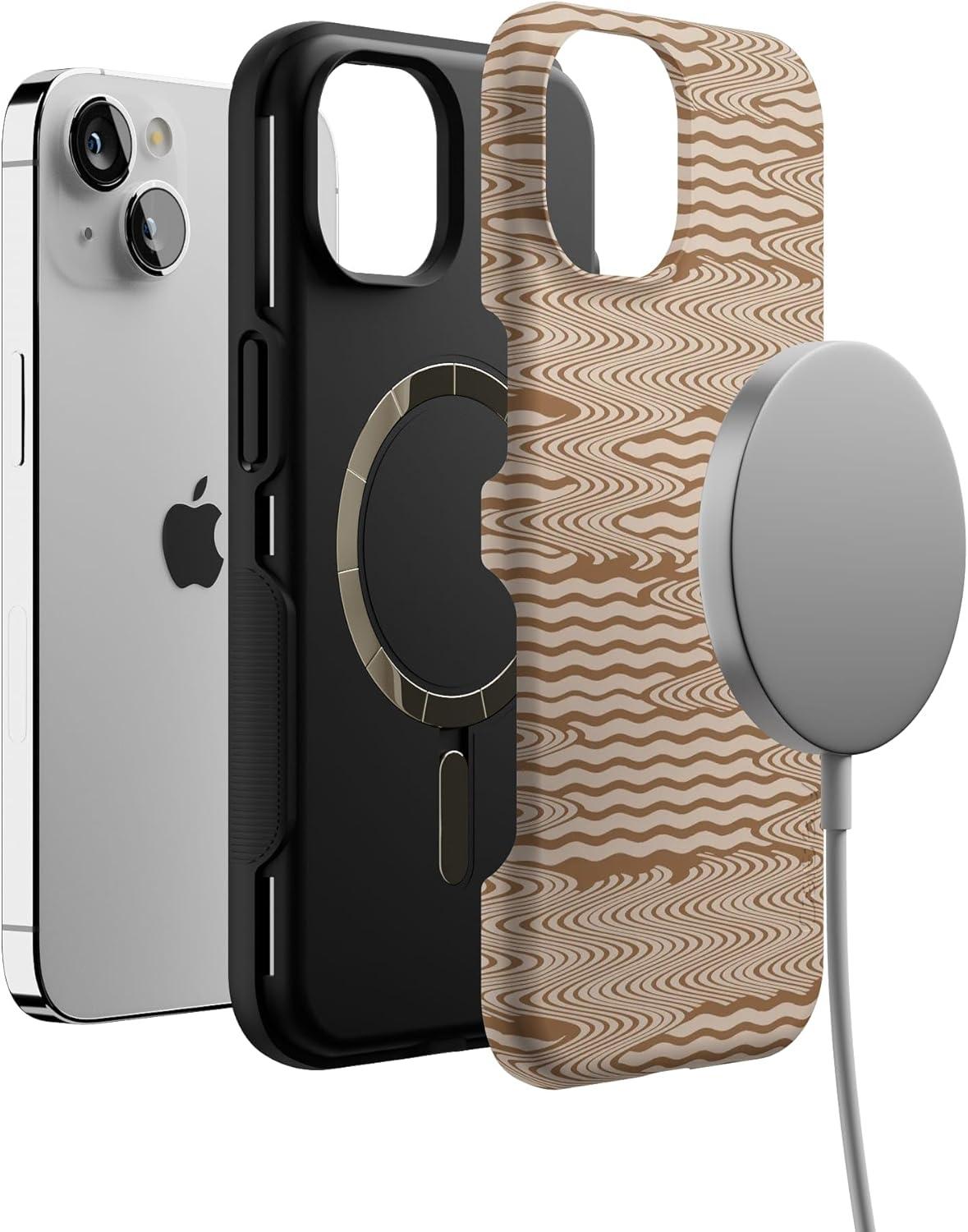 Casely iPhone 13 Case | Twilight Flora | Moody Monochrome | Bold Protective Design | Compatible with MagSafe(Mocha Ripple | Brown Waves)