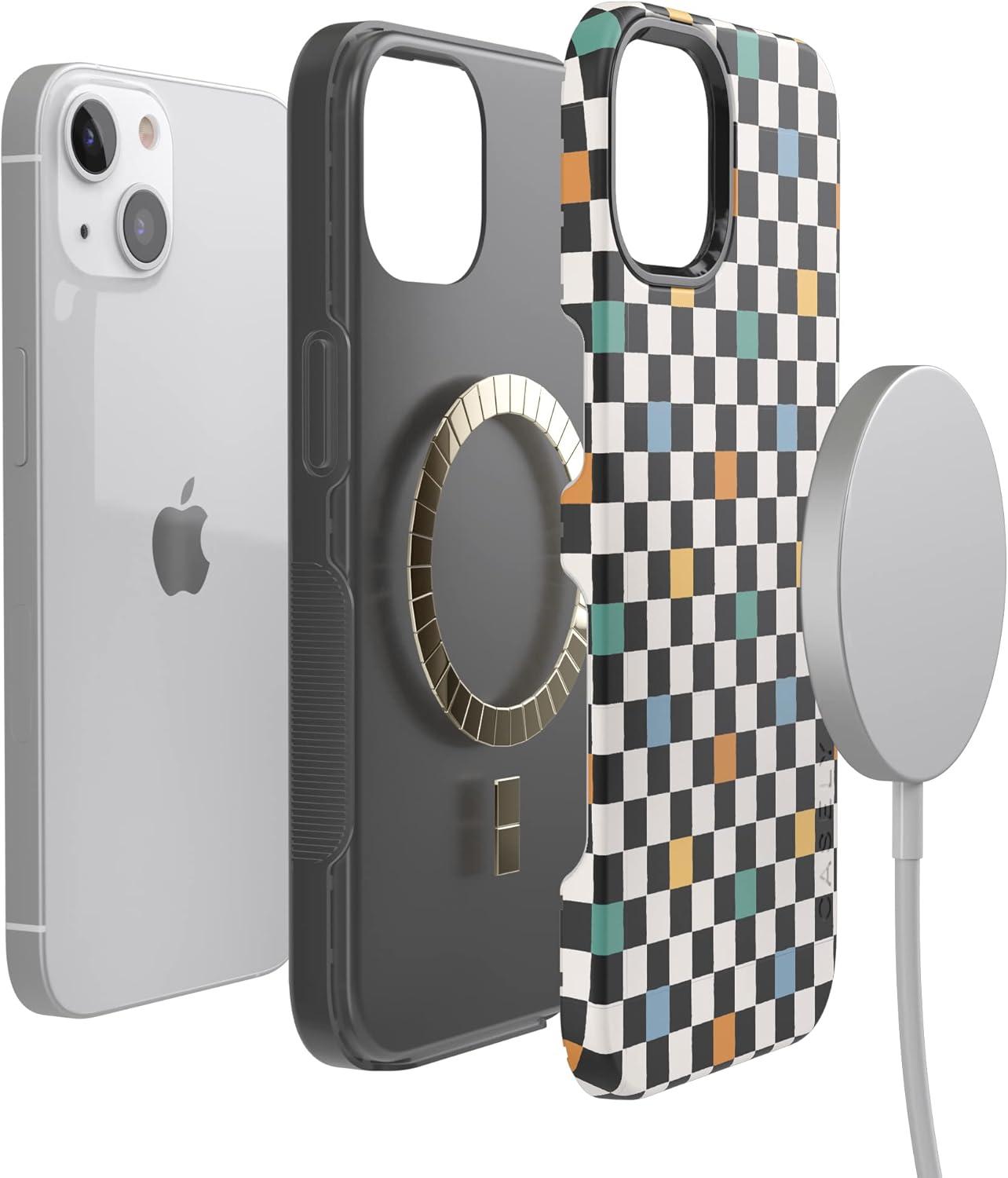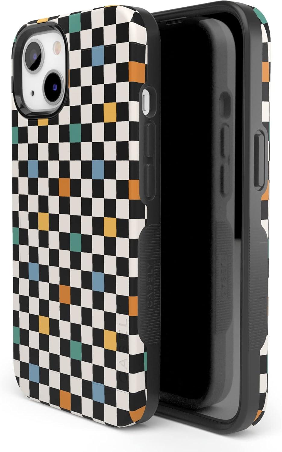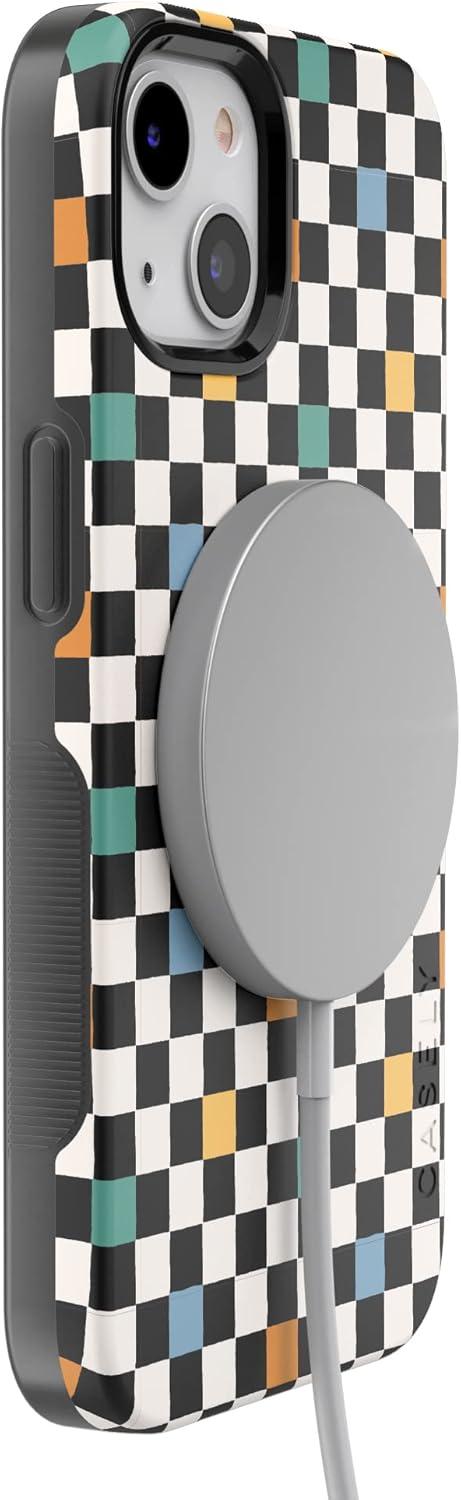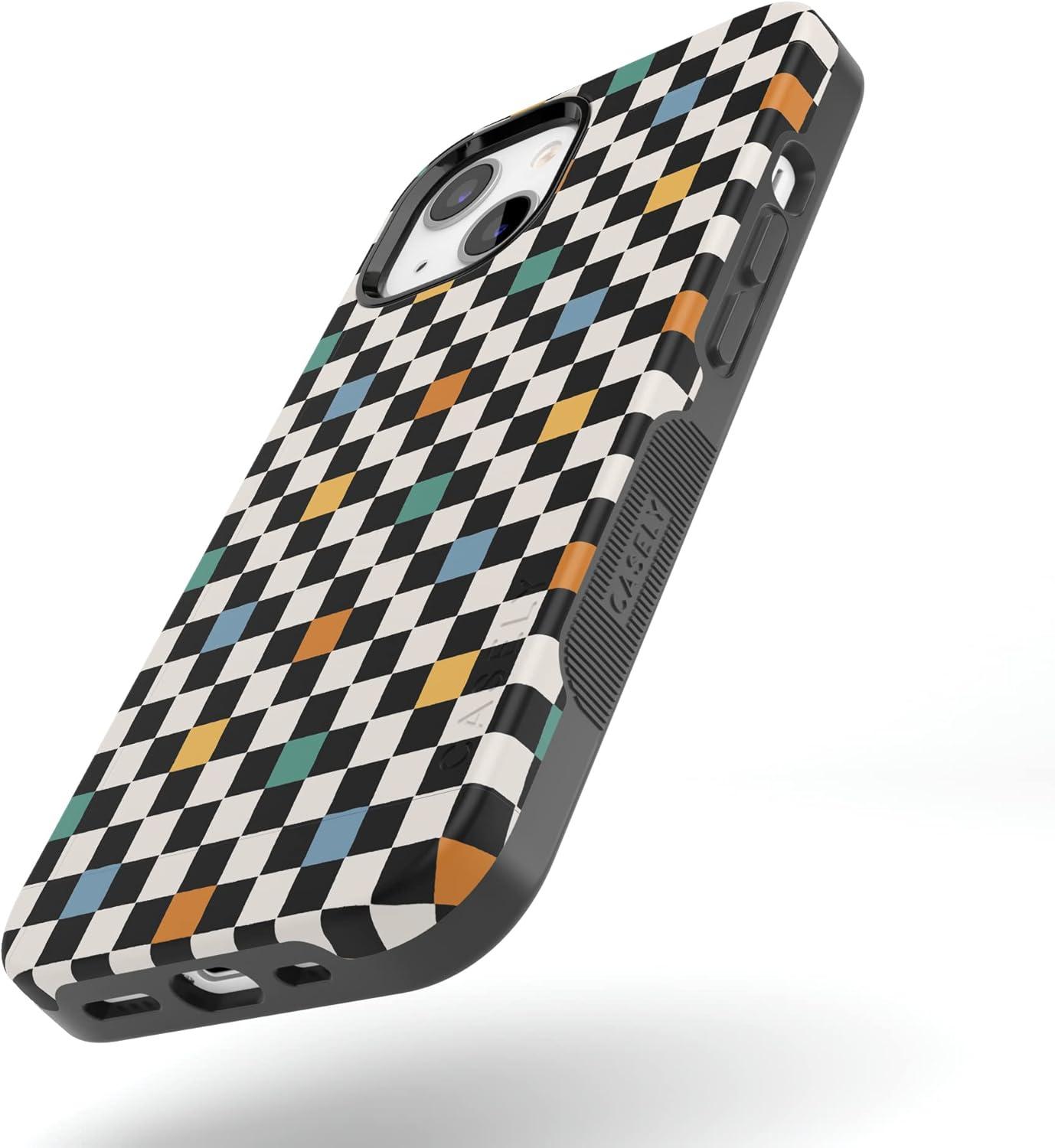 Casely iPhone 13 Case | Twilight Flora | Moody Monochrome | Bold Protective Design | Compatible with MagSafe(Old Skool | Retro Checkerboard)