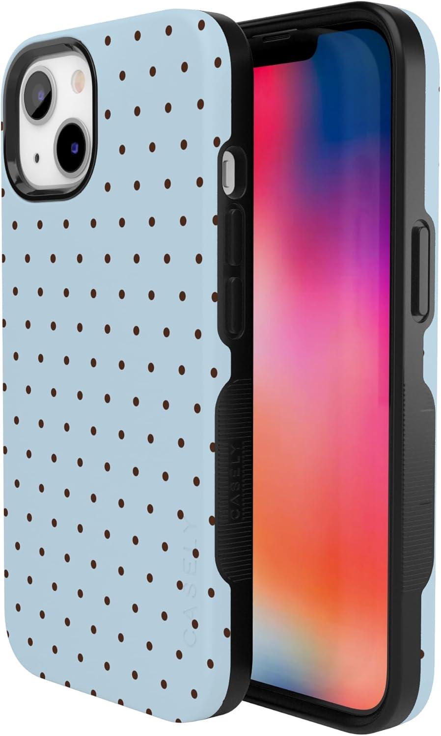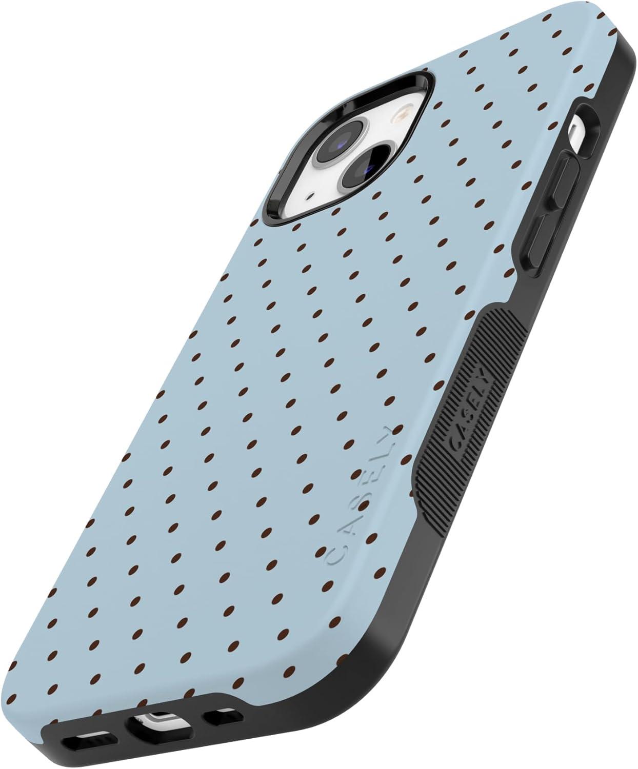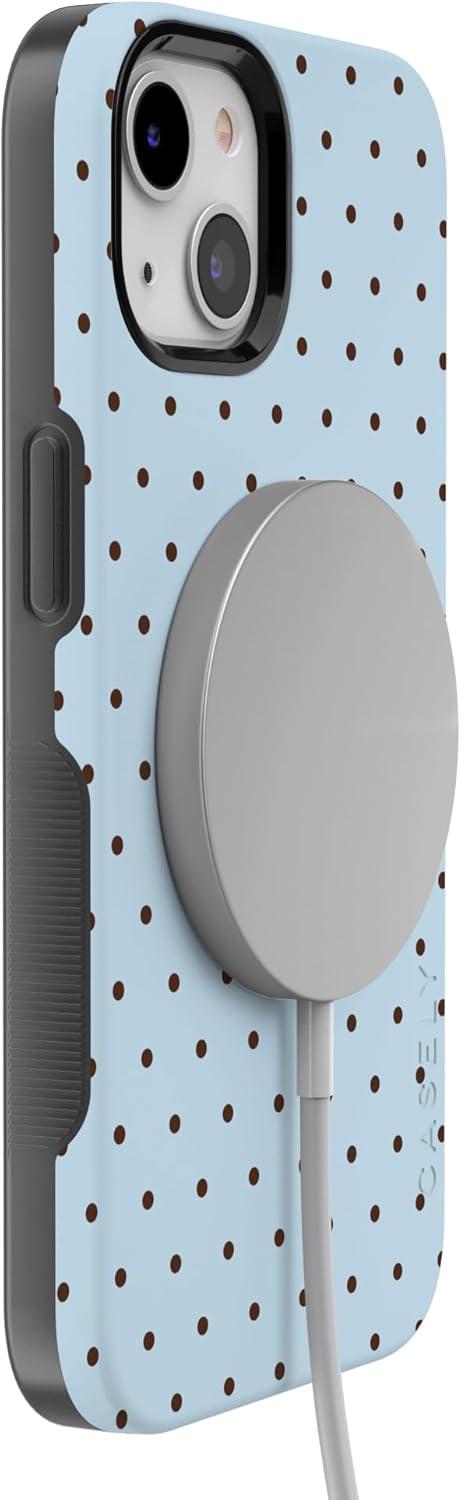 Casely iPhone 13 Case | Twilight Flora | Moody Monochrome | Bold Protective Design | Compatible with MagSafe(On the Dot | Blue Polka Dot)