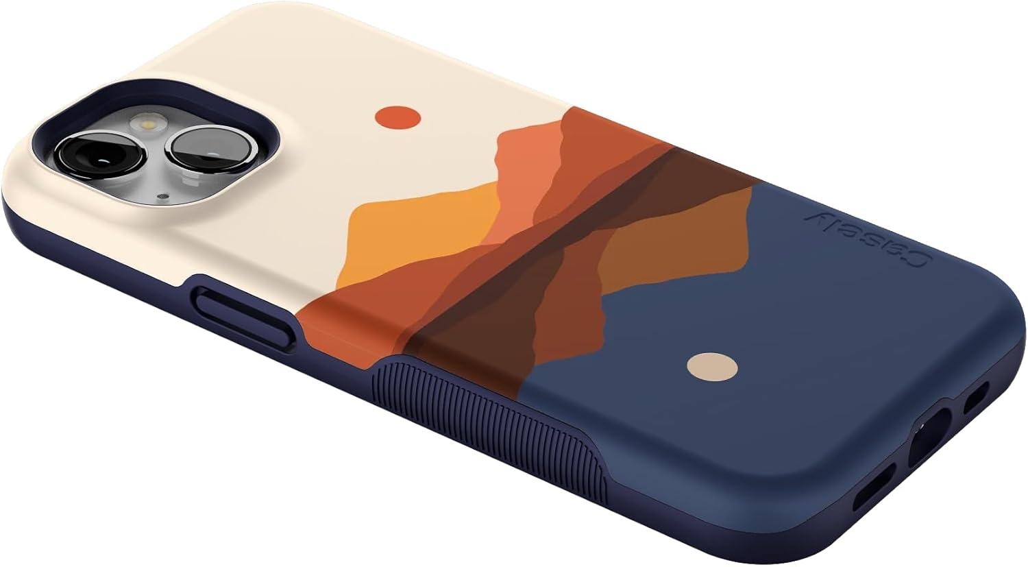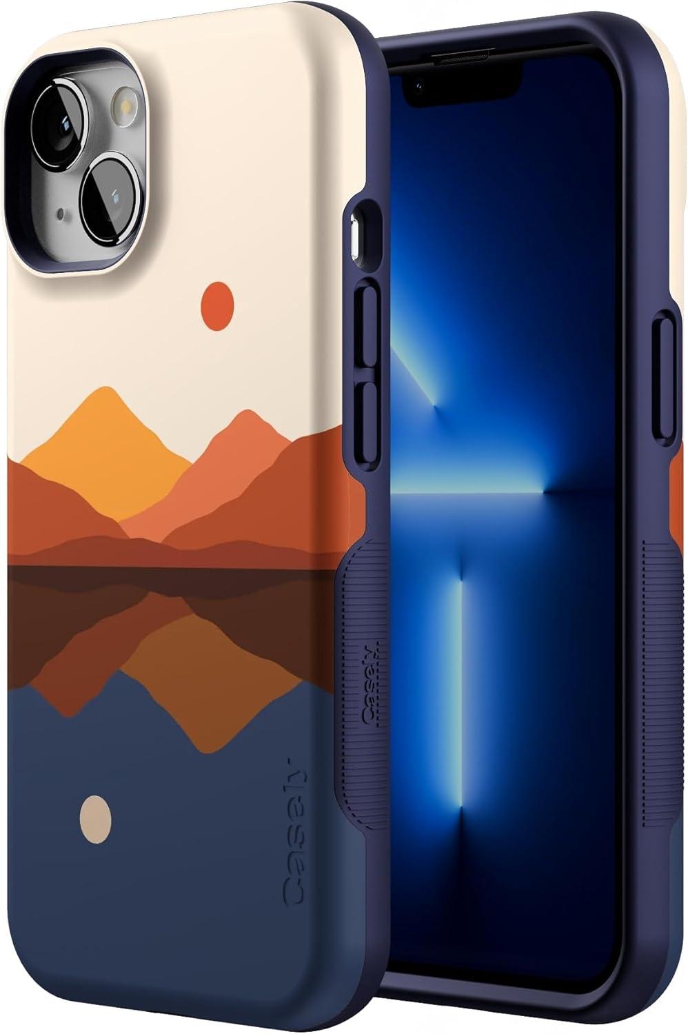 Casely iPhone 13 Case | Twilight Flora | Moody Monochrome | Bold Protective Design | Compatible with MagSafe(Opposites Attract | Day & Night Mountains)