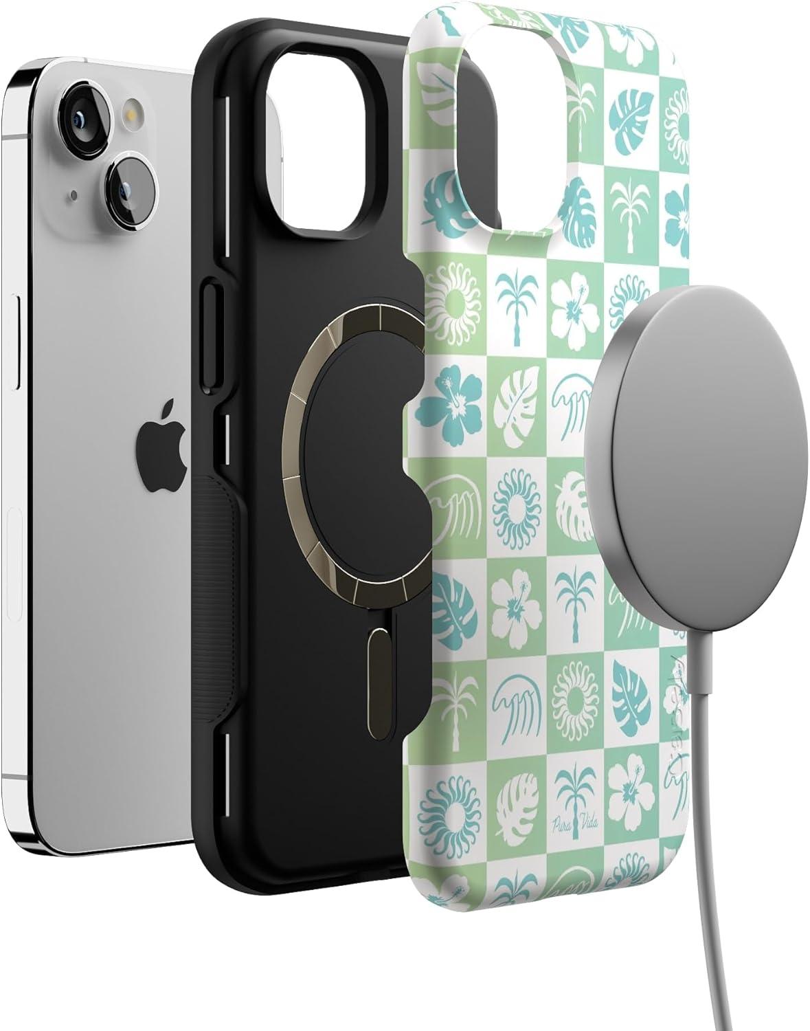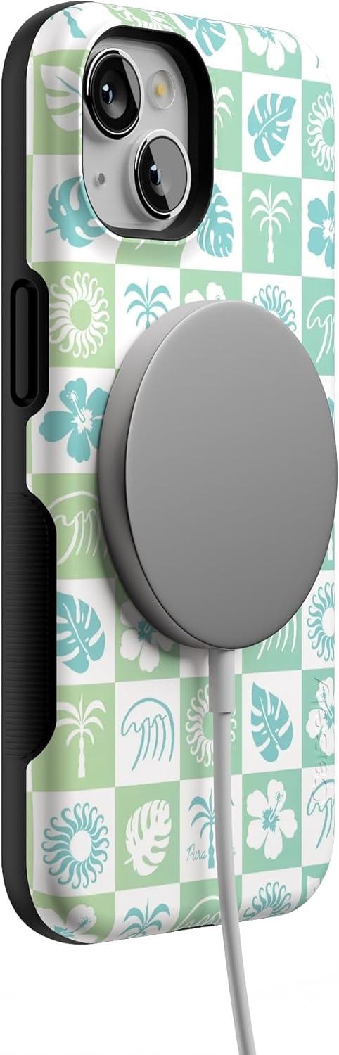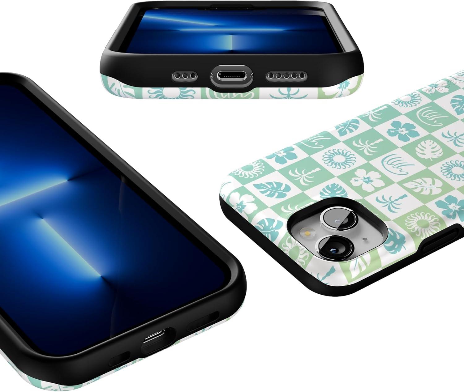 Casely iPhone 13 Case | Twilight Flora | Moody Monochrome | Bold Protective Design | Compatible with MagSafe(Pura Vida | Coastal Checkers)