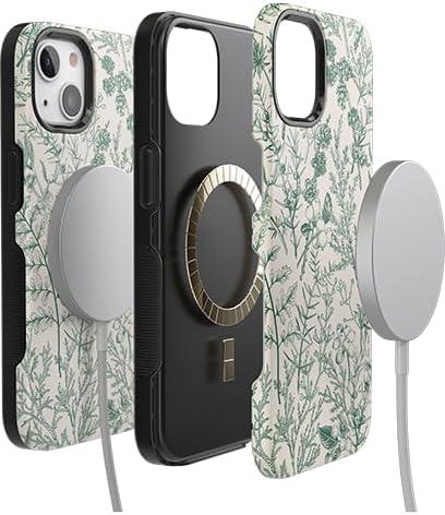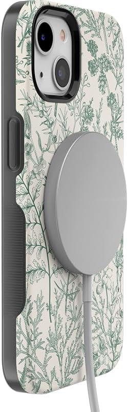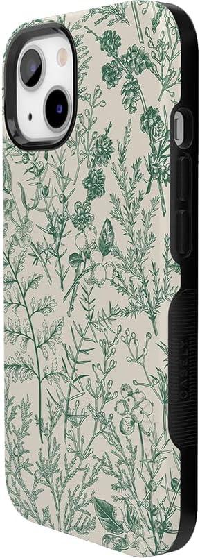 Casely iPhone 13 Case | Twilight Flora | Moody Monochrome | Bold Protective Design | Compatible with MagSafe(Sage Garden | Green Floral)