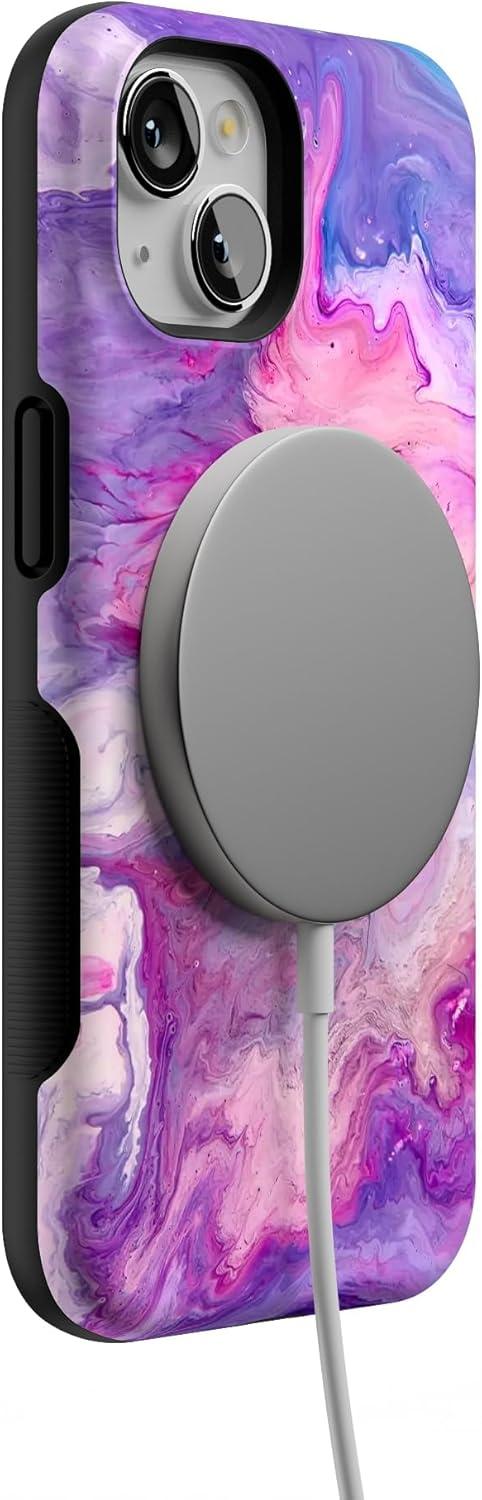 Casely iPhone 13 Case | Twilight Flora | Moody Monochrome | Bold Protective Design | Compatible with MagSafe(Tie Dying Over You Purple Marble)