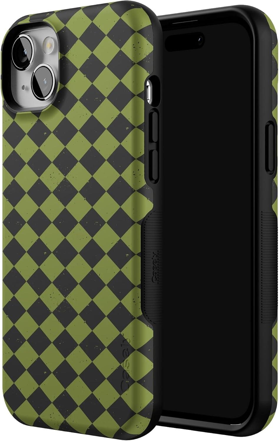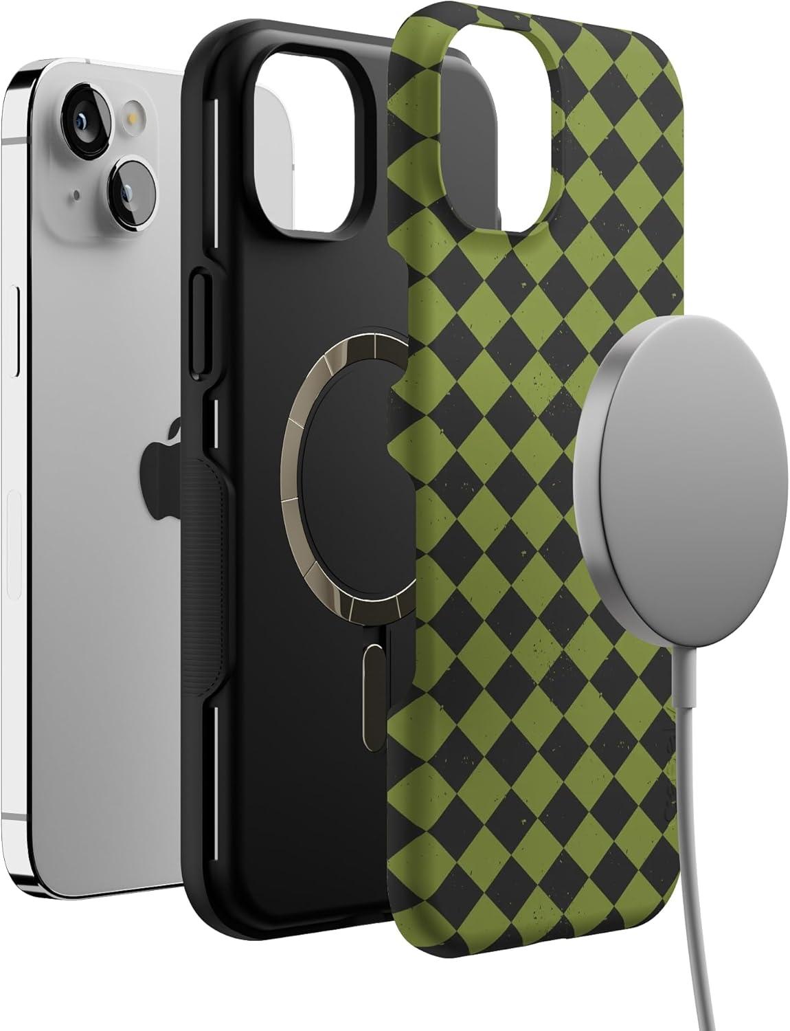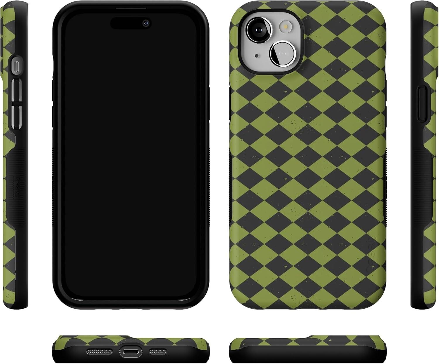 Casely iPhone 13 Mini Case | Harlequin Wicked Diamond | Black and Green | Bold Protective Design | MagSafe Compatible Design