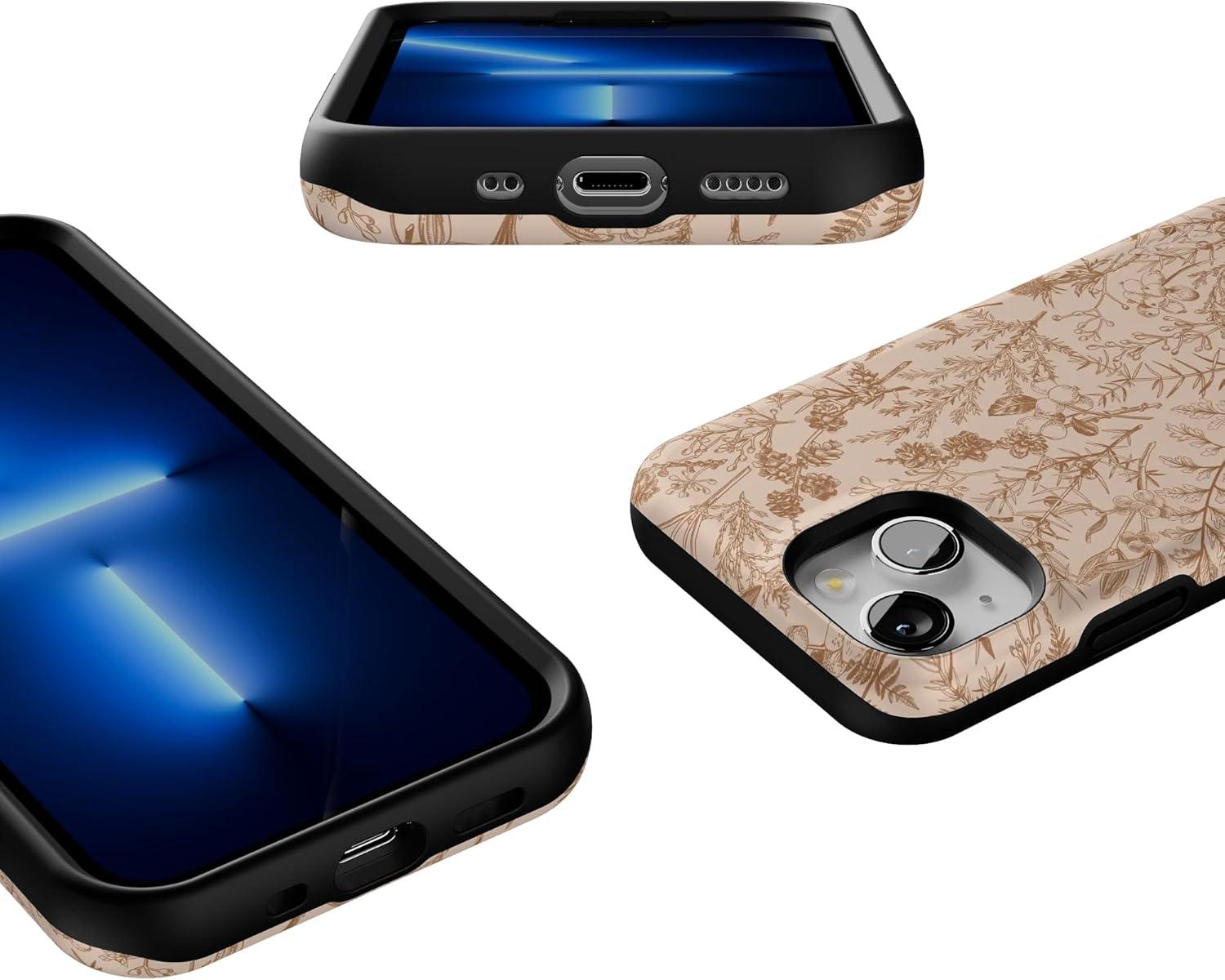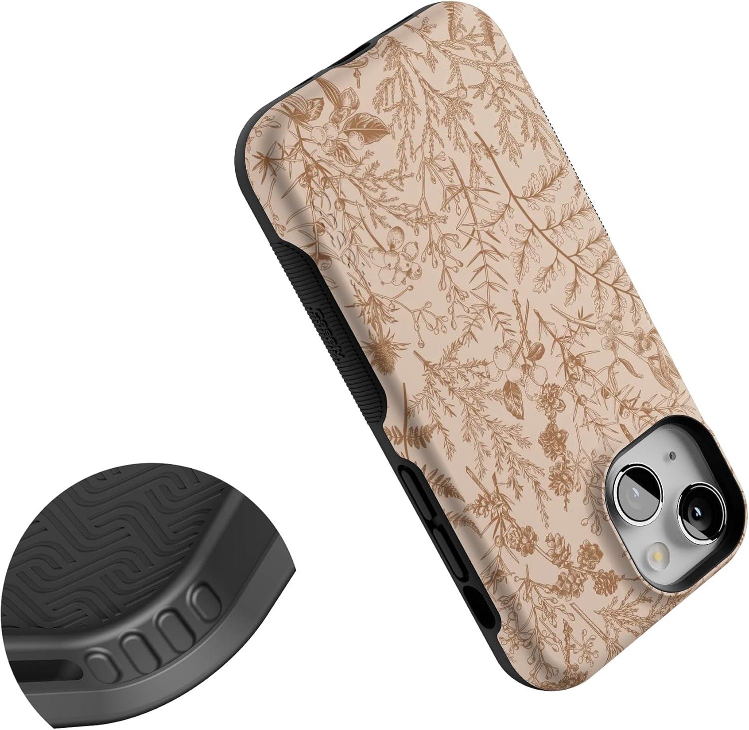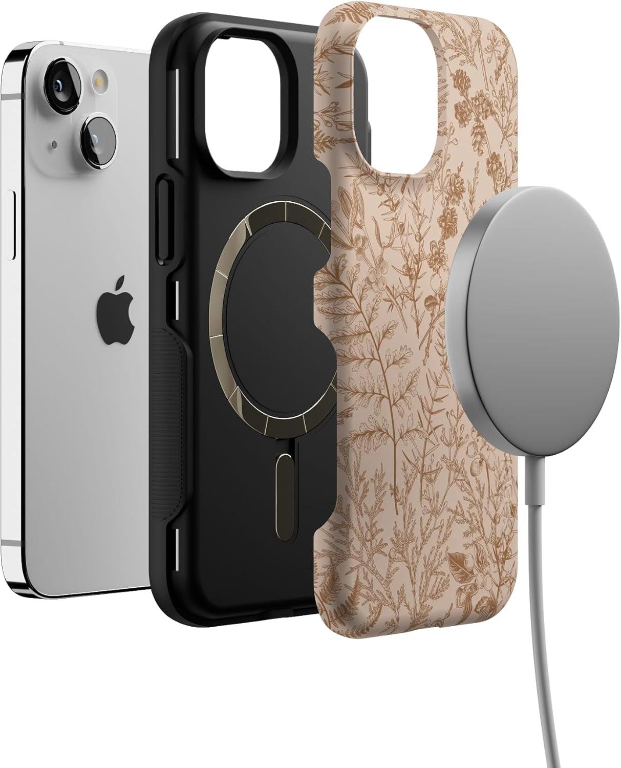 Casely iPhone 13 Mini Case | I’d Pick You | Red Strawberry | Compatible with MagSafe | Bold Protective Design(Beige Garden | Neutral Floral)
