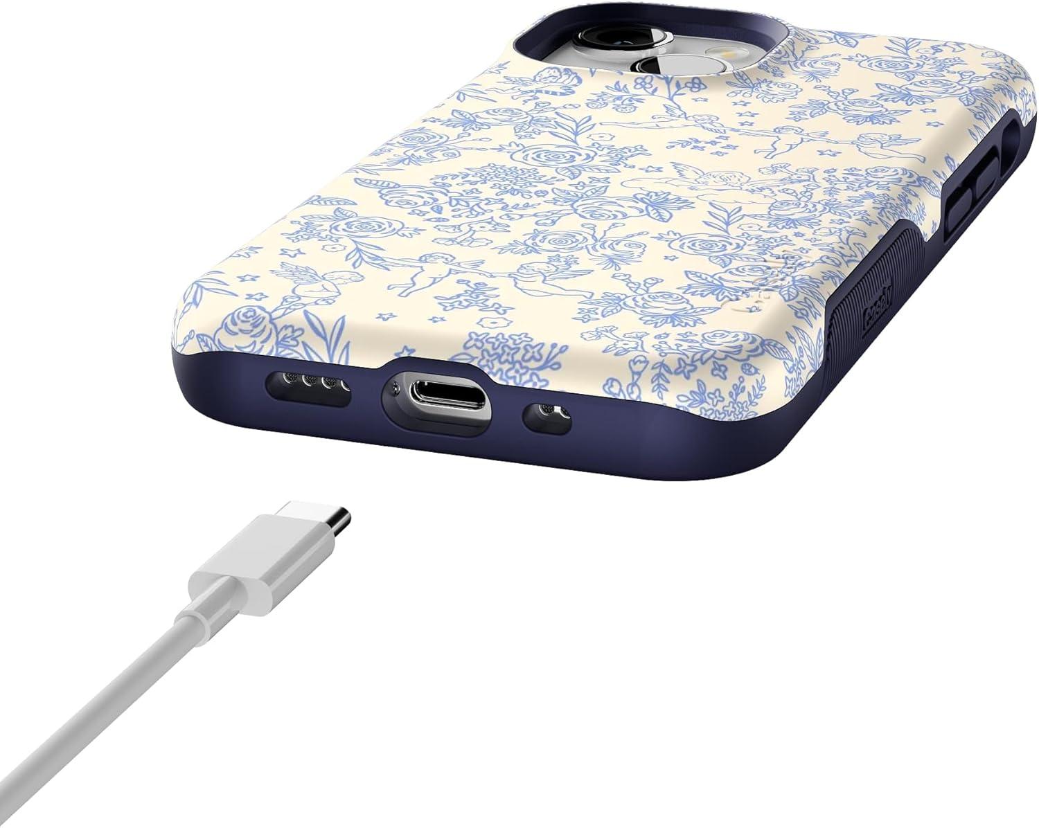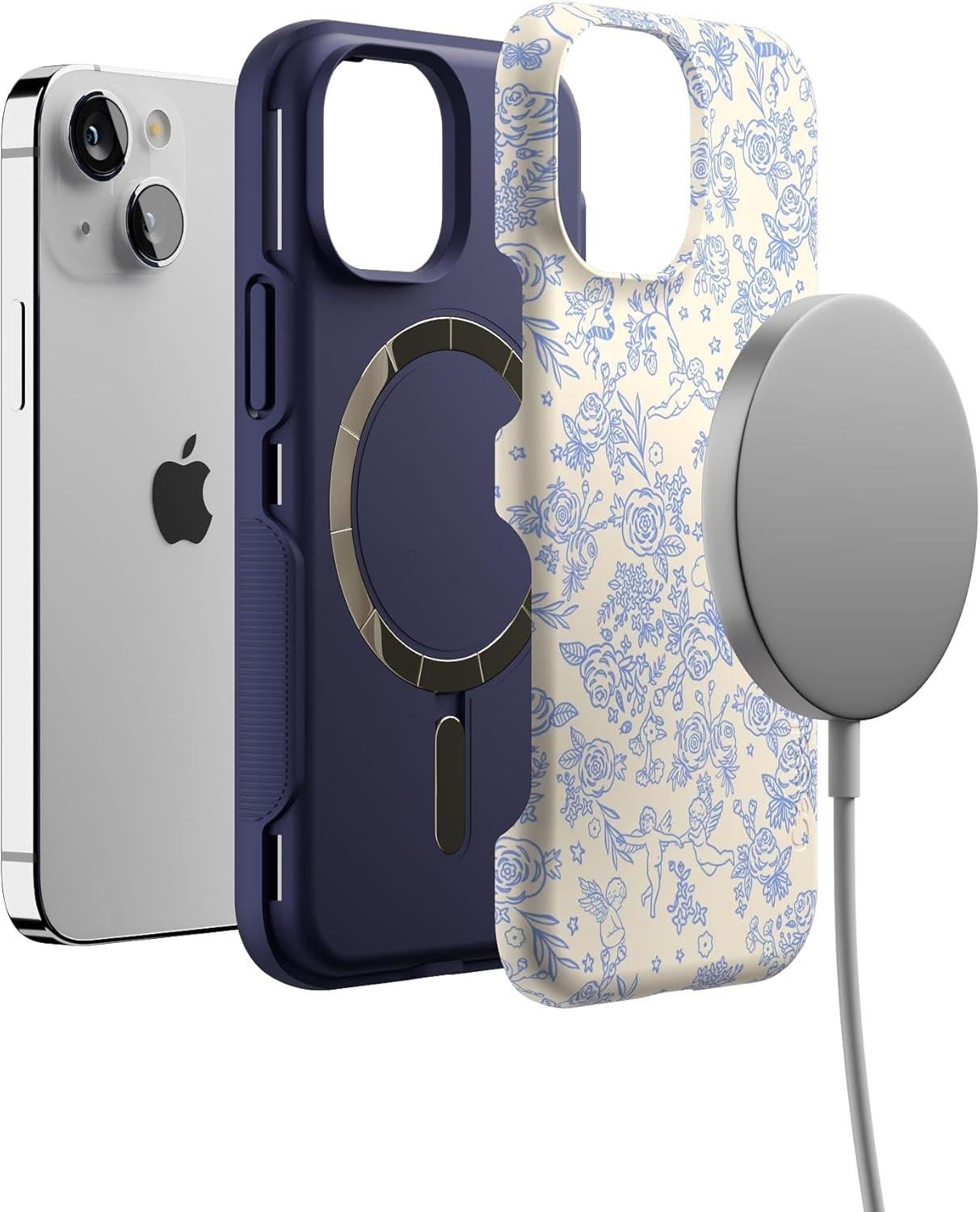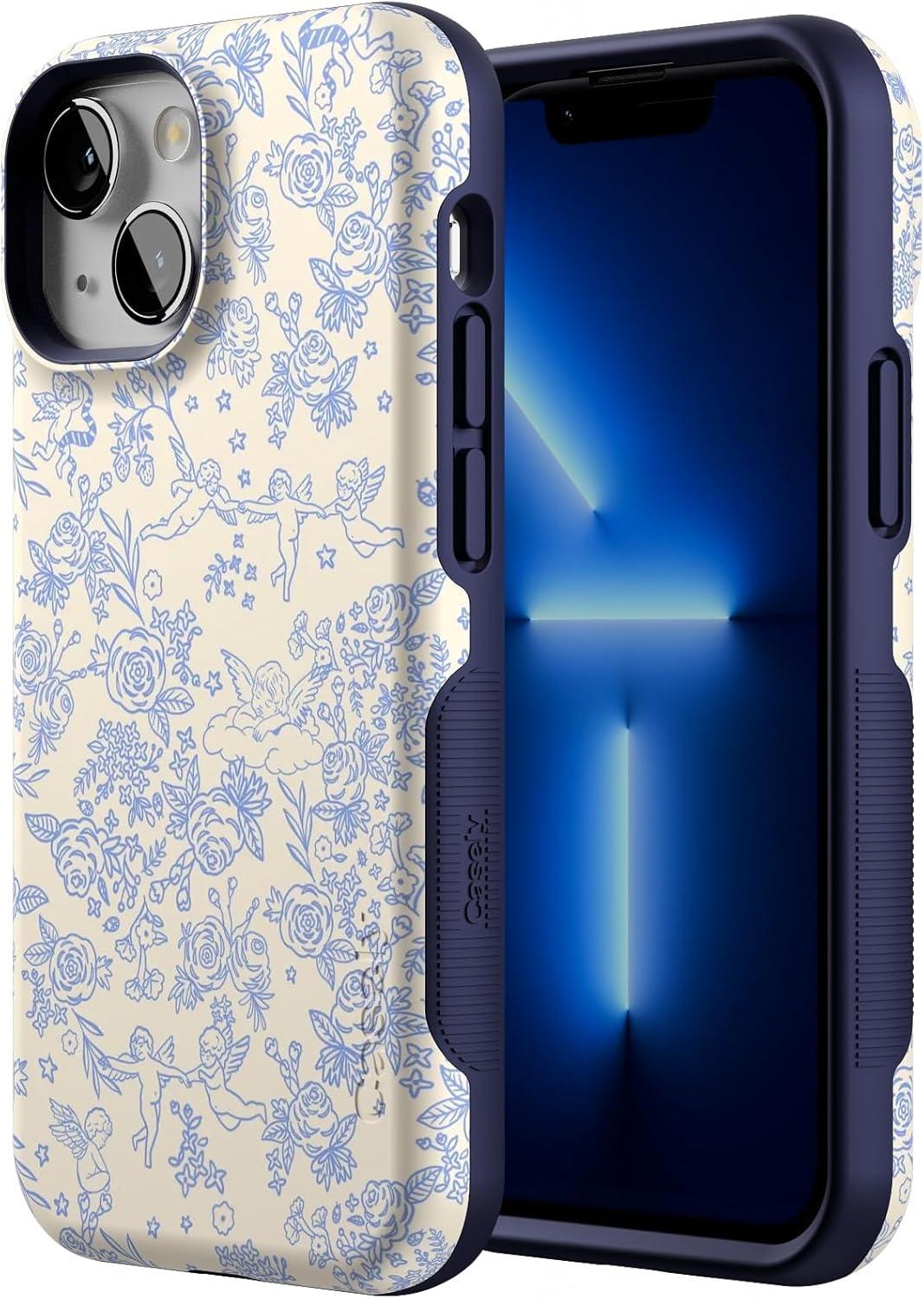 Casely iPhone 13 Mini Case | I’d Pick You | Red Strawberry | Compatible with MagSafe | Bold Protective Design(Cupid’s Canvas | Periwinkle Floral)