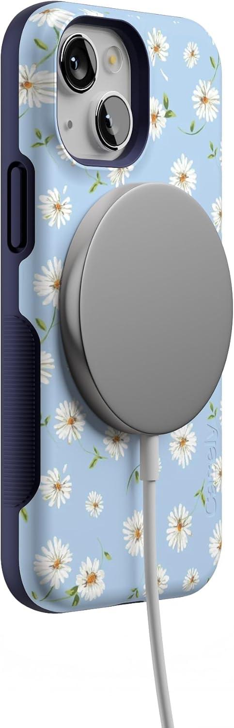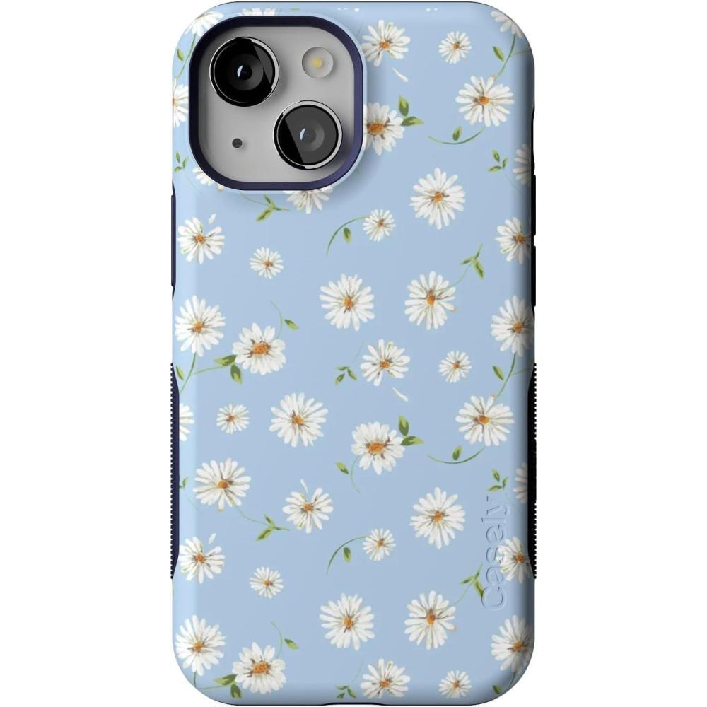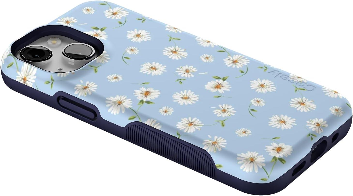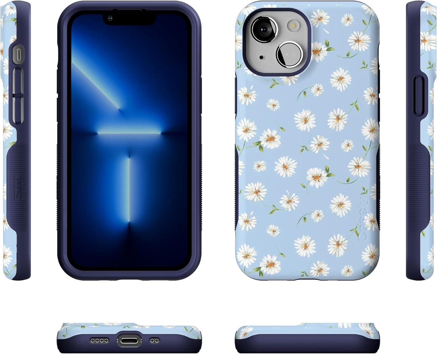 Casely iPhone 13 Mini Case | I’d Pick You | Red Strawberry | Compatible with MagSafe | Bold Protective Design(Daisy Daydream | Baby Blue Floral)
