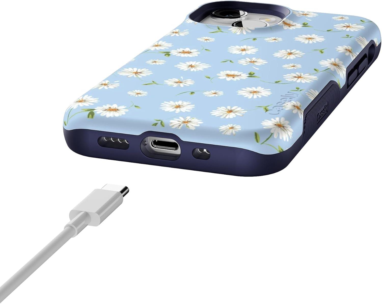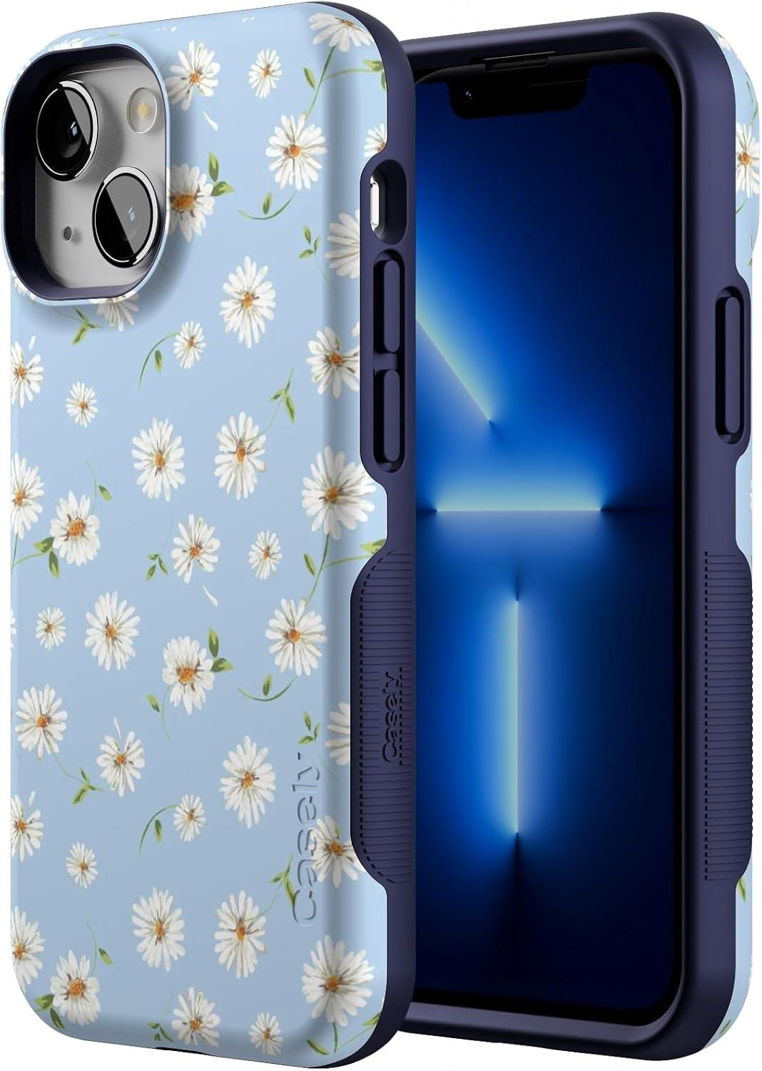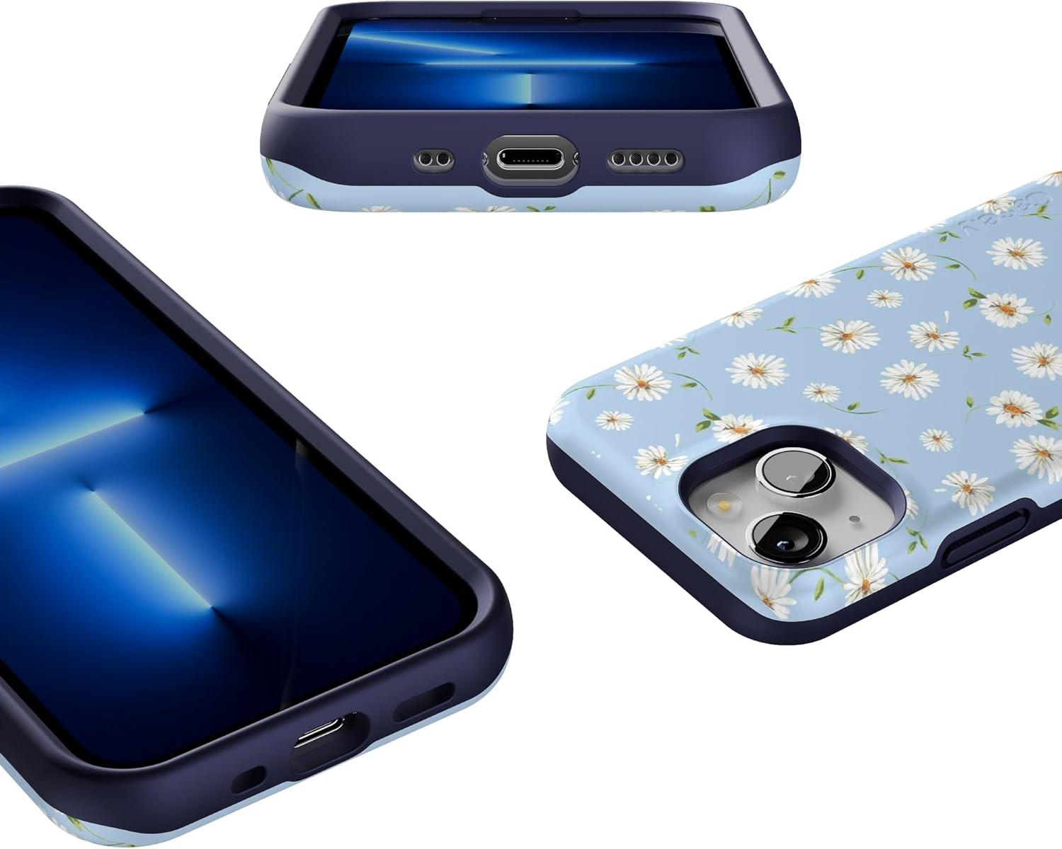 Casely iPhone 13 Mini Case | I’d Pick You | Red Strawberry | Compatible with MagSafe | Bold Protective Design(Daisy Daydream | Baby Blue Floral)