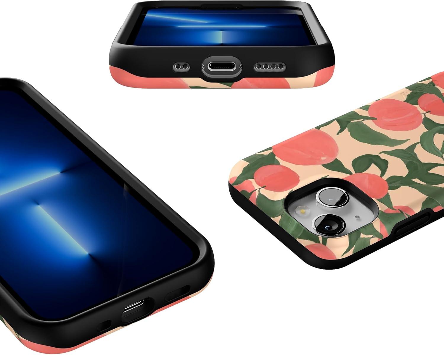 Casely iPhone 13 Mini Case | I’d Pick You | Red Strawberry | Compatible with MagSafe | Bold Protective Design(Feeling Peachy | Blush Vines)