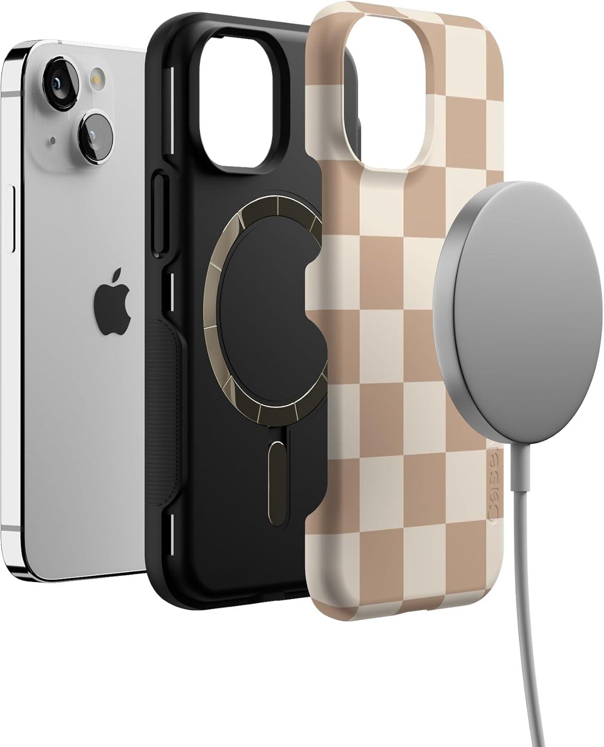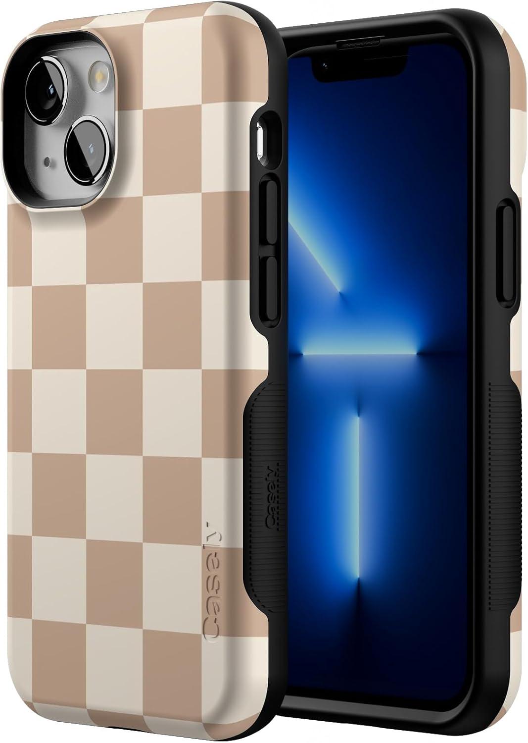 Casely iPhone 13 Mini Case | I’d Pick You | Red Strawberry | Compatible with MagSafe | Bold Protective Design(Fit Check | Neutral Checkerboard Checkered)