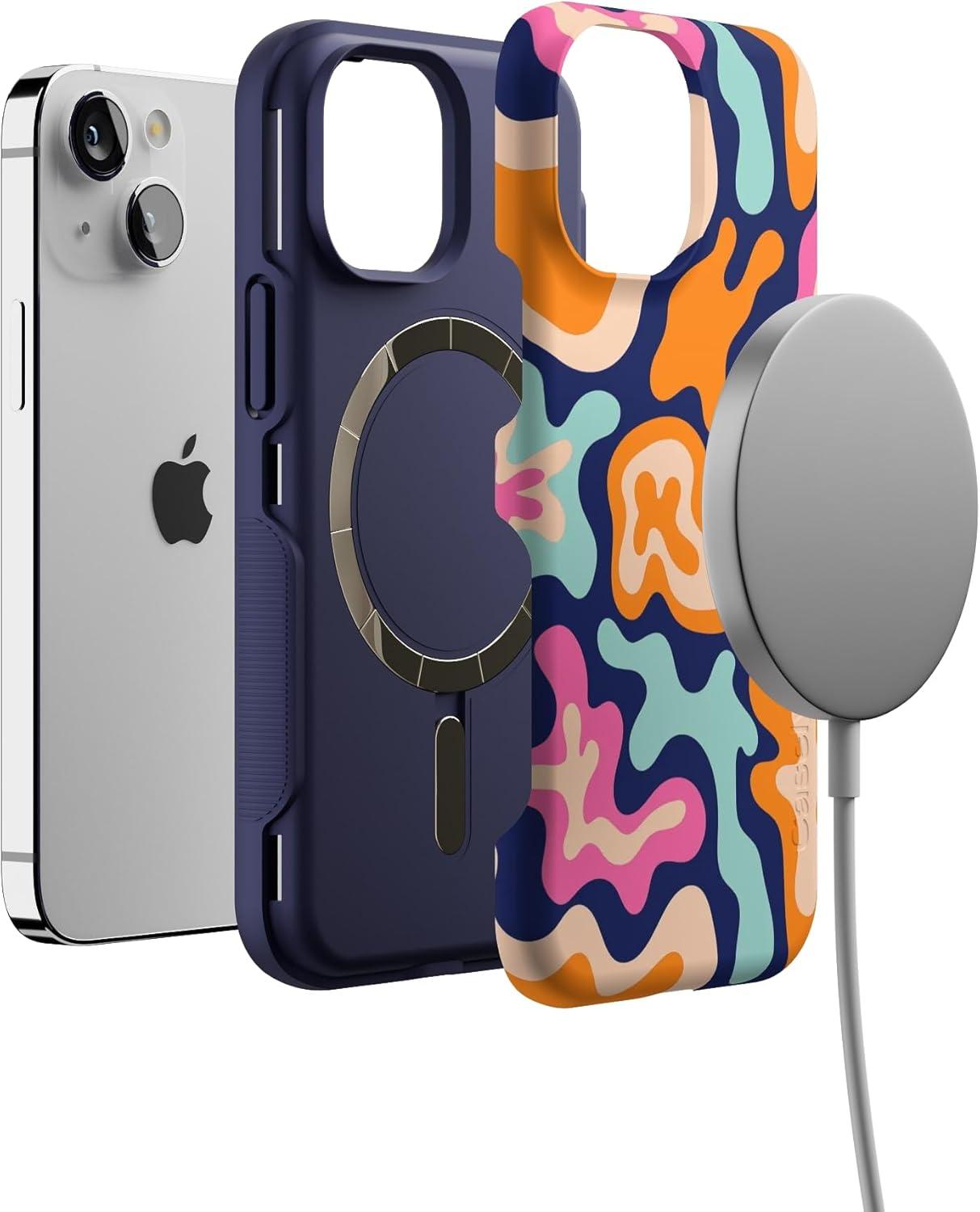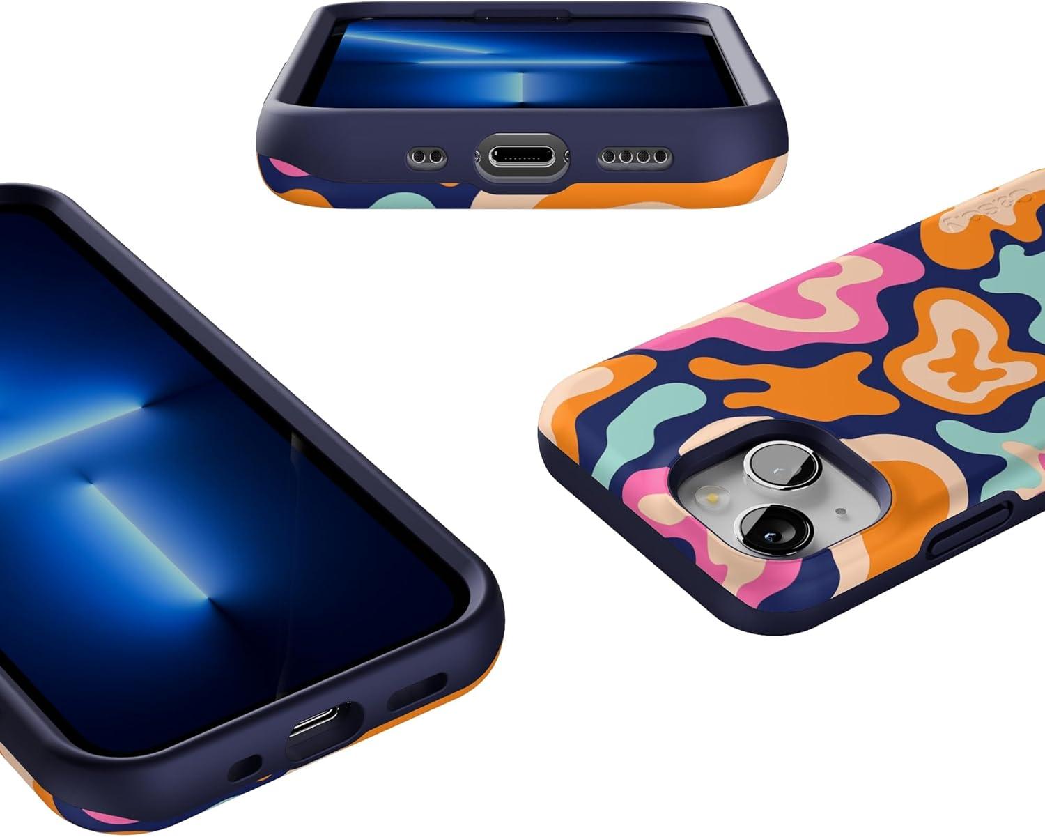 Casely iPhone 13 Mini Case | I’d Pick You | Red Strawberry | Compatible with MagSafe | Bold Protective Design(Midnight Color Splash | Abstract Retro)
