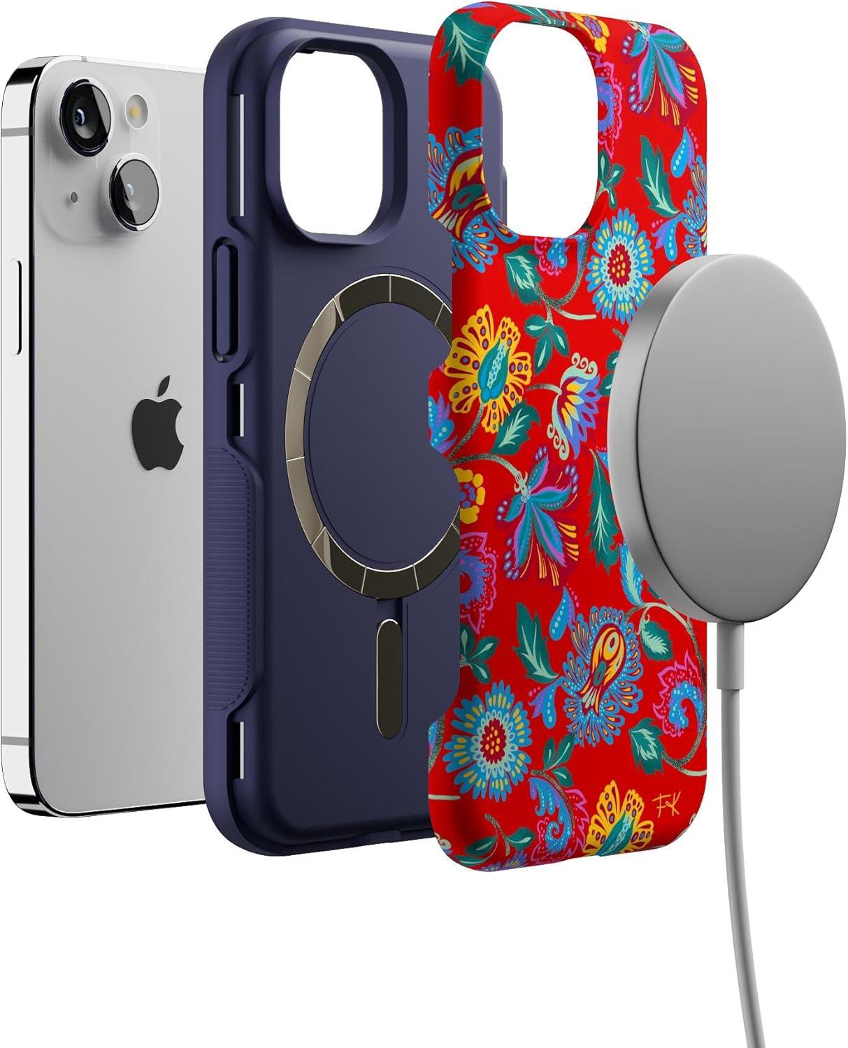 Casely iPhone 13 Mini Case | I’d Pick You | Red Strawberry | Compatible with MagSafe | Bold Protective Design(Painted Flowers | Frida Kahlo Floral)