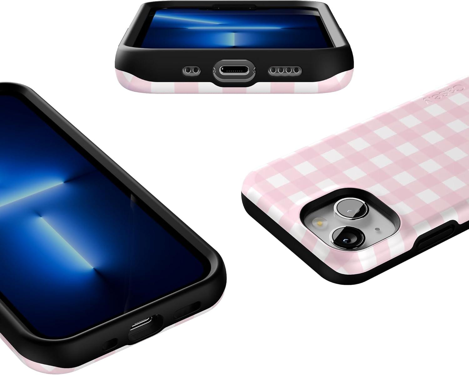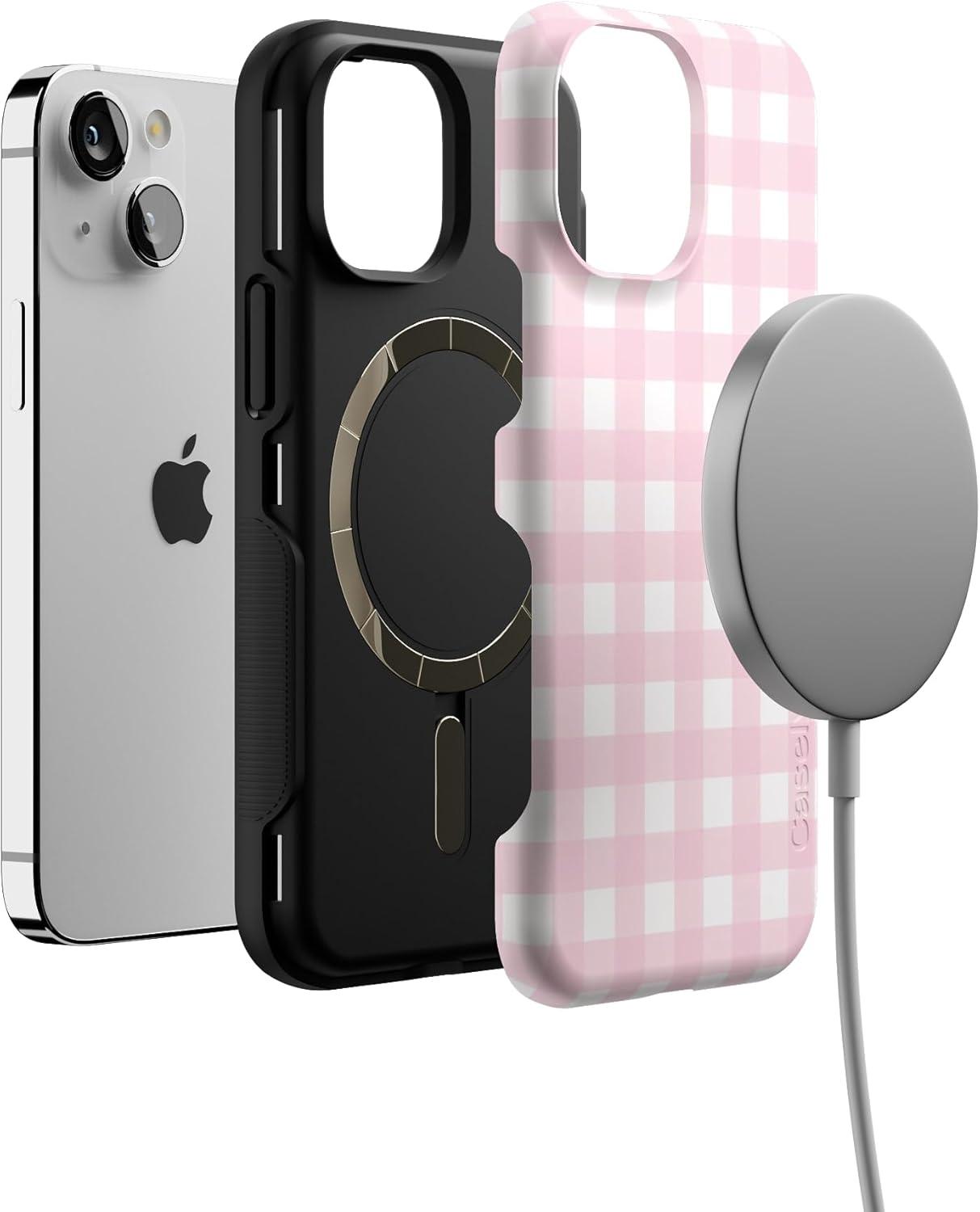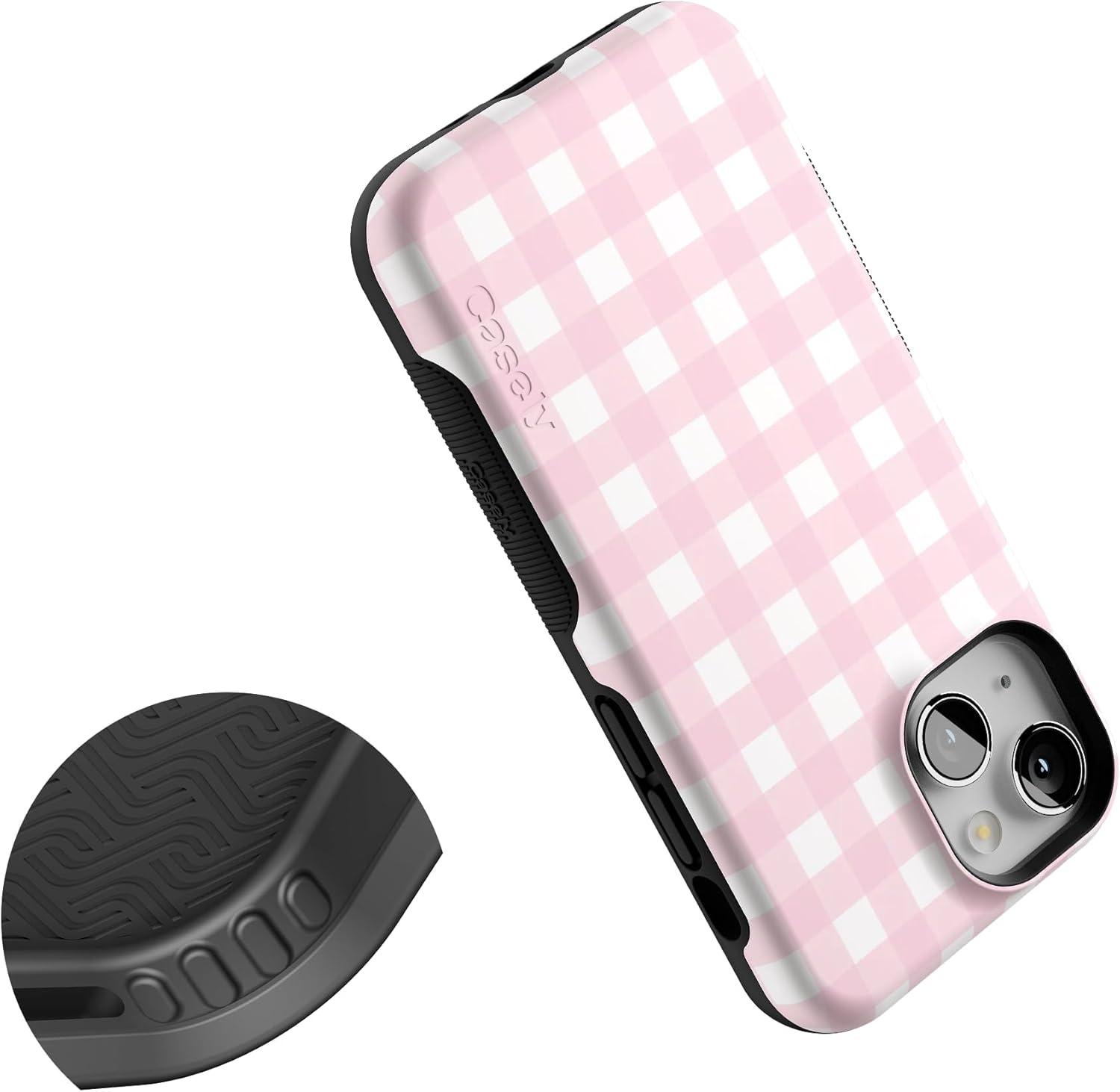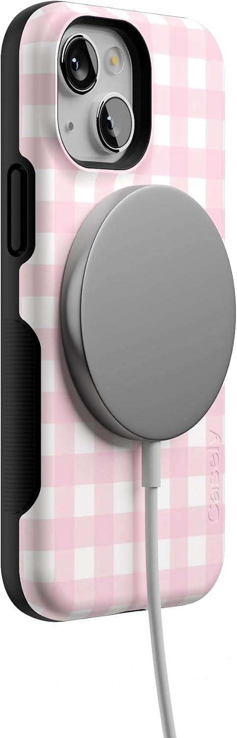Casely iPhone 13 Mini Case | I’d Pick You | Red Strawberry | Compatible with MagSafe | Bold Protective Design(Pink Plaid | Sunday Best)