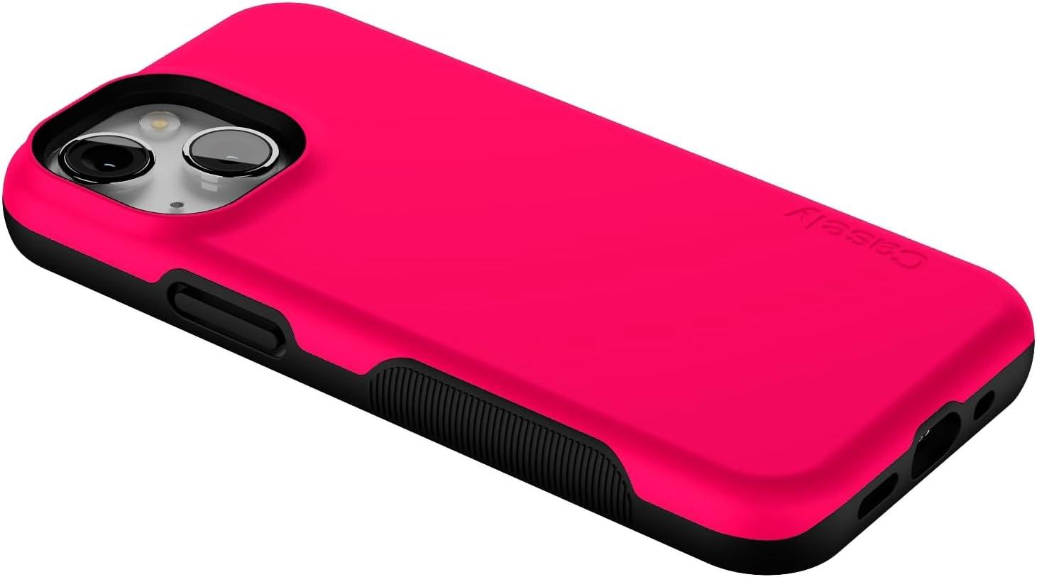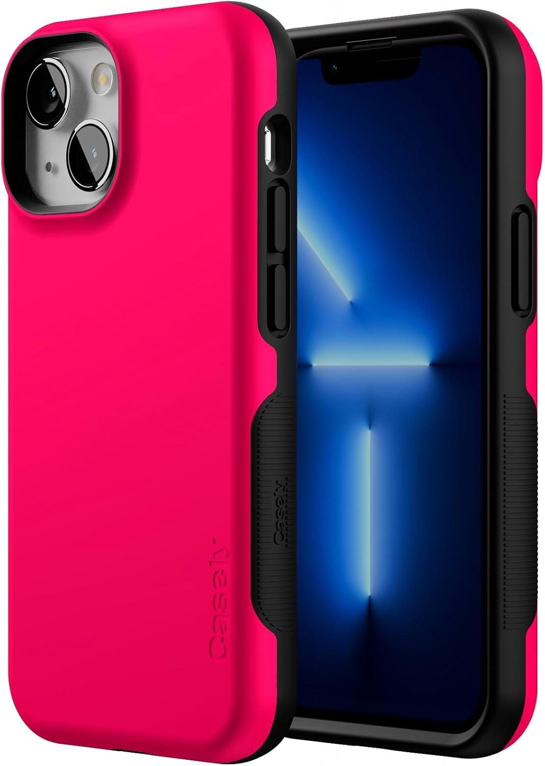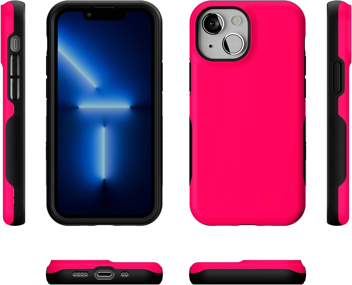 Casely iPhone 13 Mini Case | I’d Pick You | Red Strawberry | Compatible with MagSafe | Bold Protective Design(Think Pink | Solid Neon Pink)