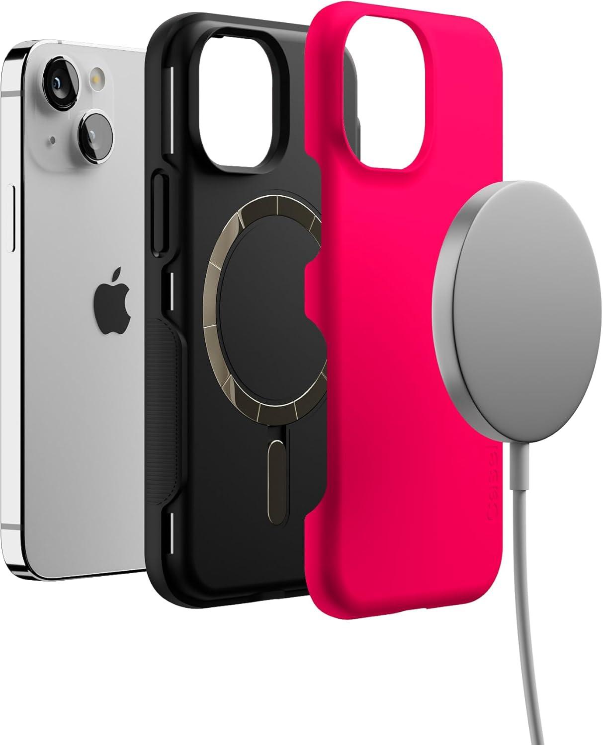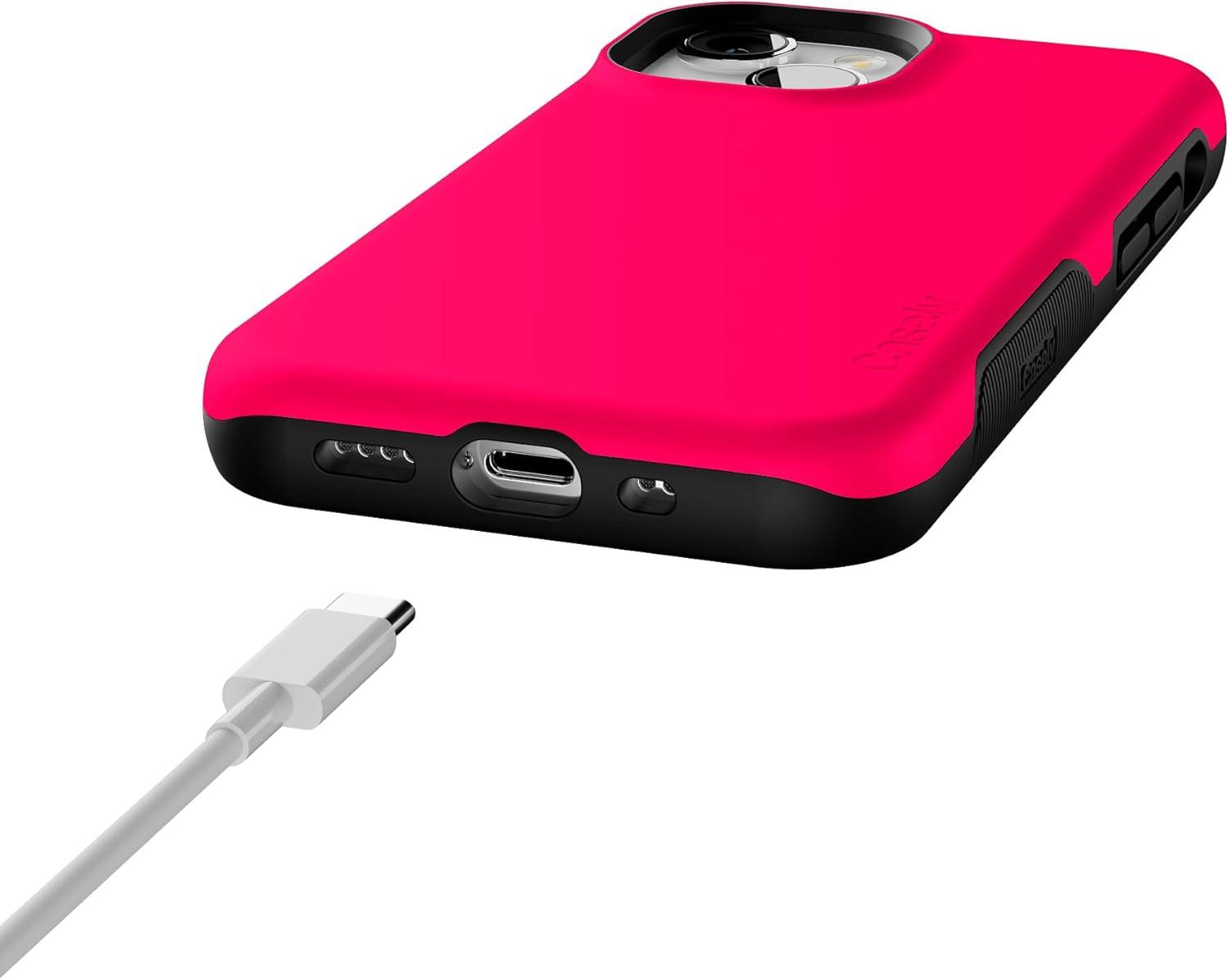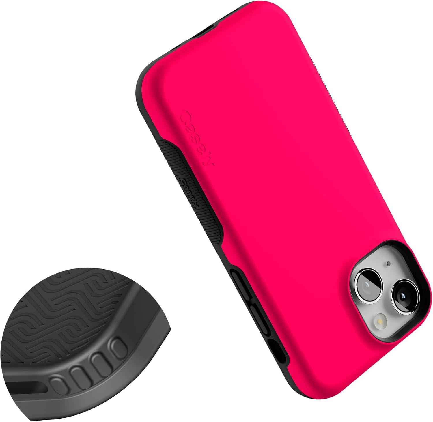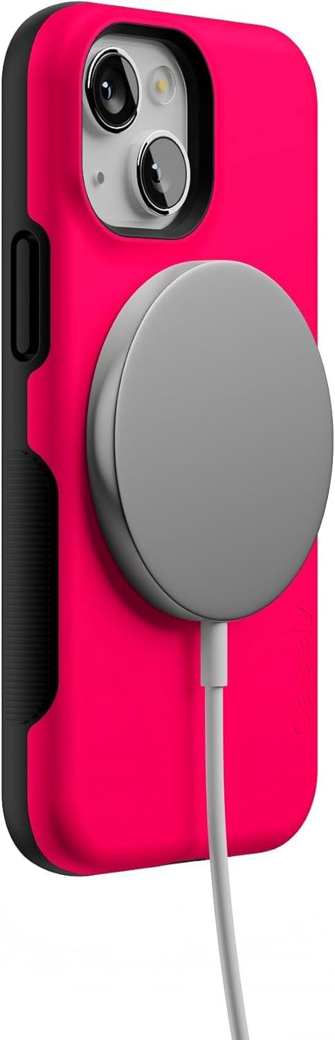 Casely iPhone 13 Mini Case | I’d Pick You | Red Strawberry | Compatible with MagSafe | Bold Protective Design(Think Pink | Solid Neon Pink)