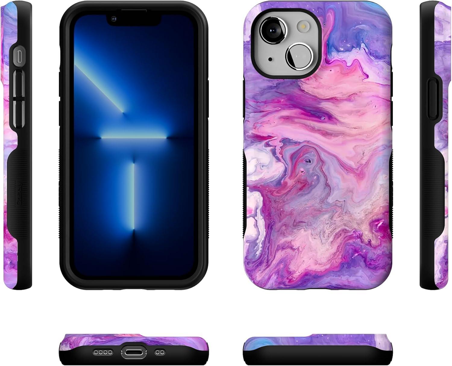 Casely iPhone 13 Mini Case | I’d Pick You | Red Strawberry | Compatible with MagSafe | Bold Protective Design(Tie Dying Over You | Purple Marble iPhone)