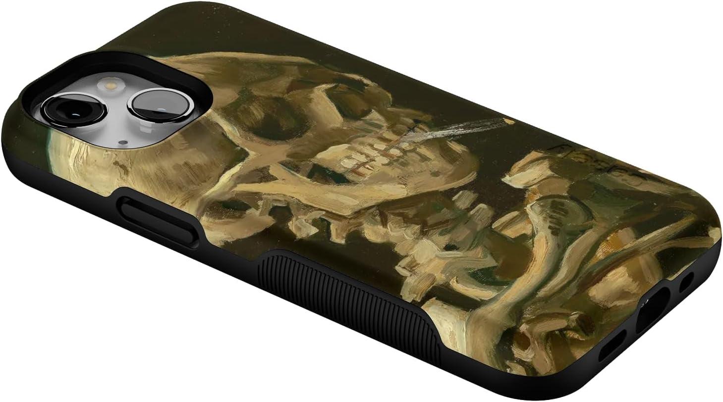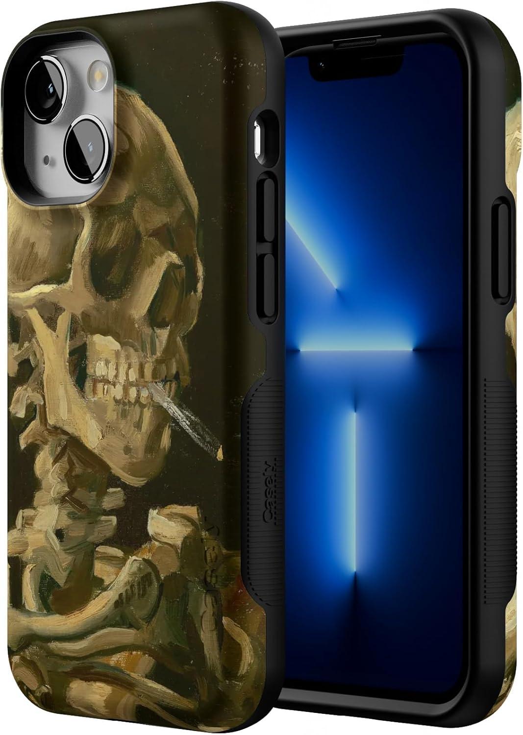 Casely iPhone 13 Mini Case | I’d Pick You | Red Strawberry | Compatible with MagSafe | Bold Protective Design(Van Gogh | Head of a Skeleton with a Burning Cig)
