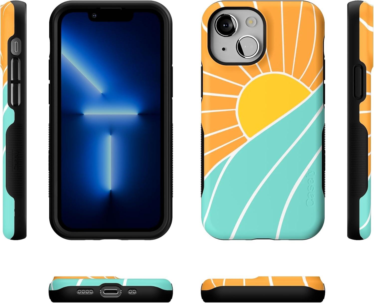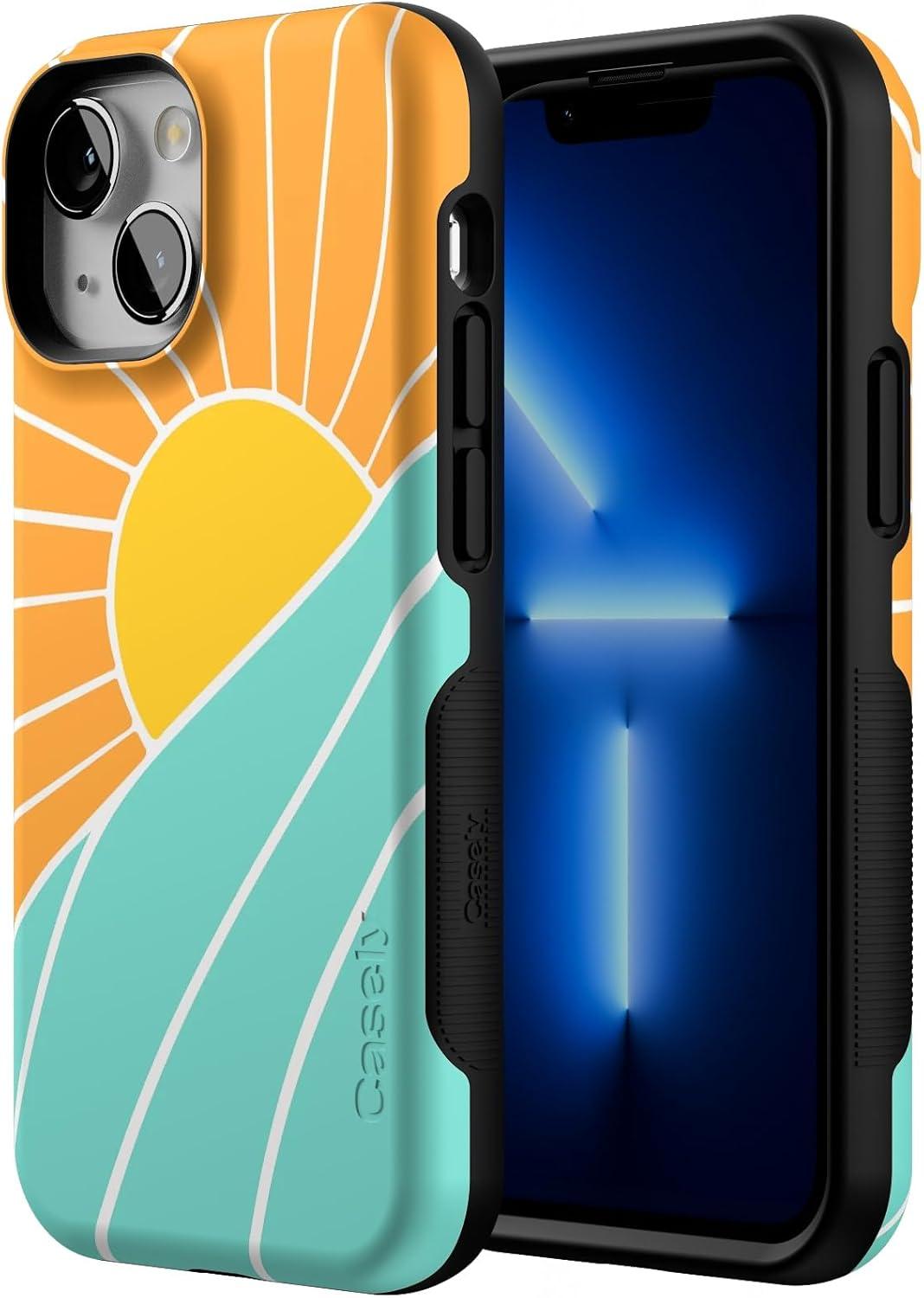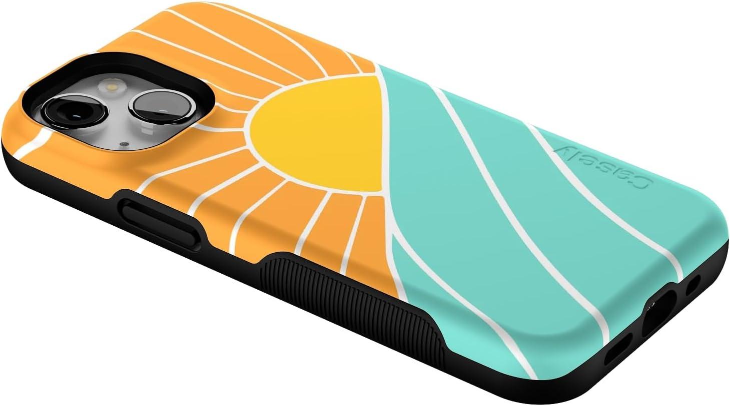 Casely iPhone 13 Mini Case | I’d Pick You | Red Strawberry | Compatible with MagSafe | Bold Protective Design(Waves & Rays | Sunshine)