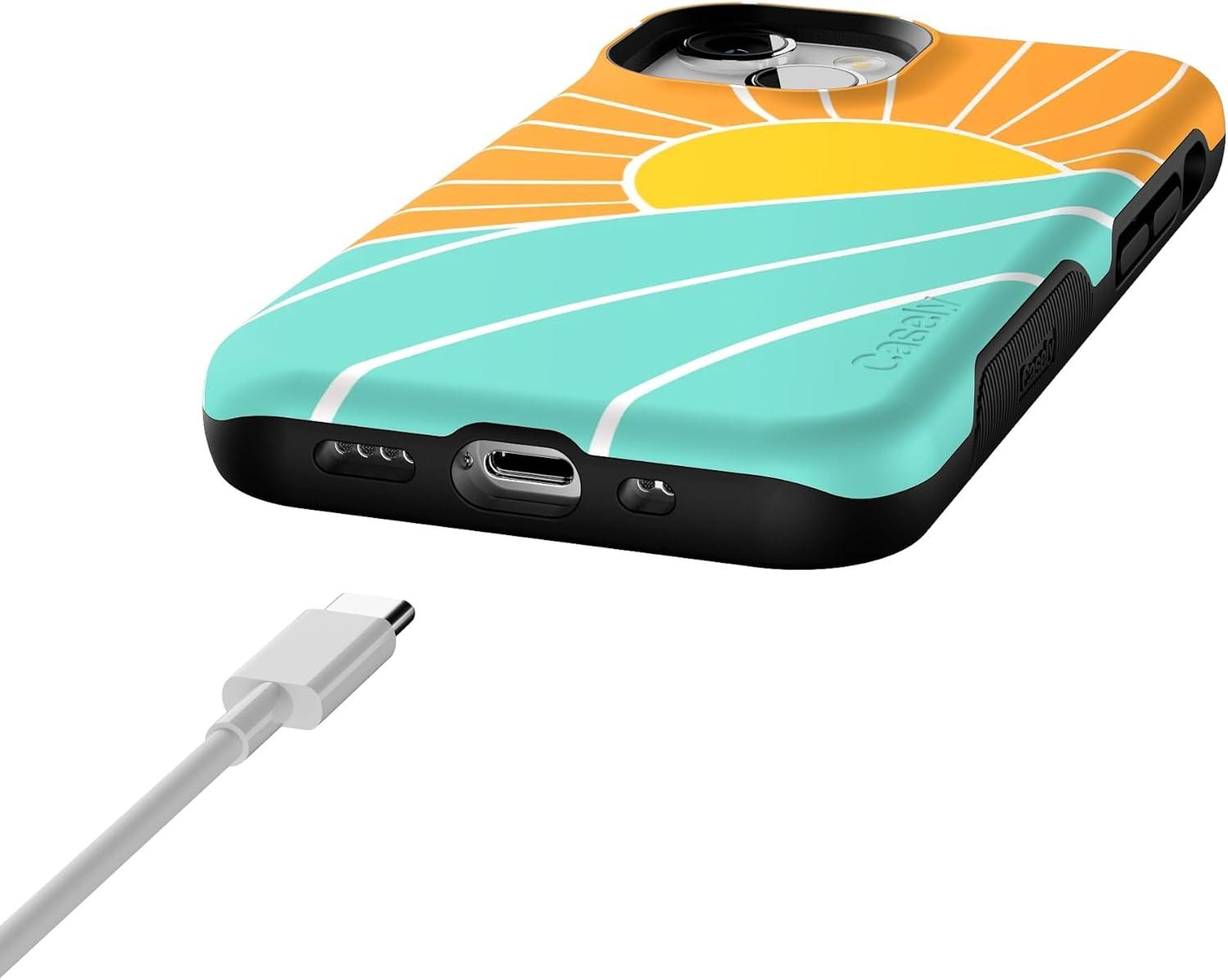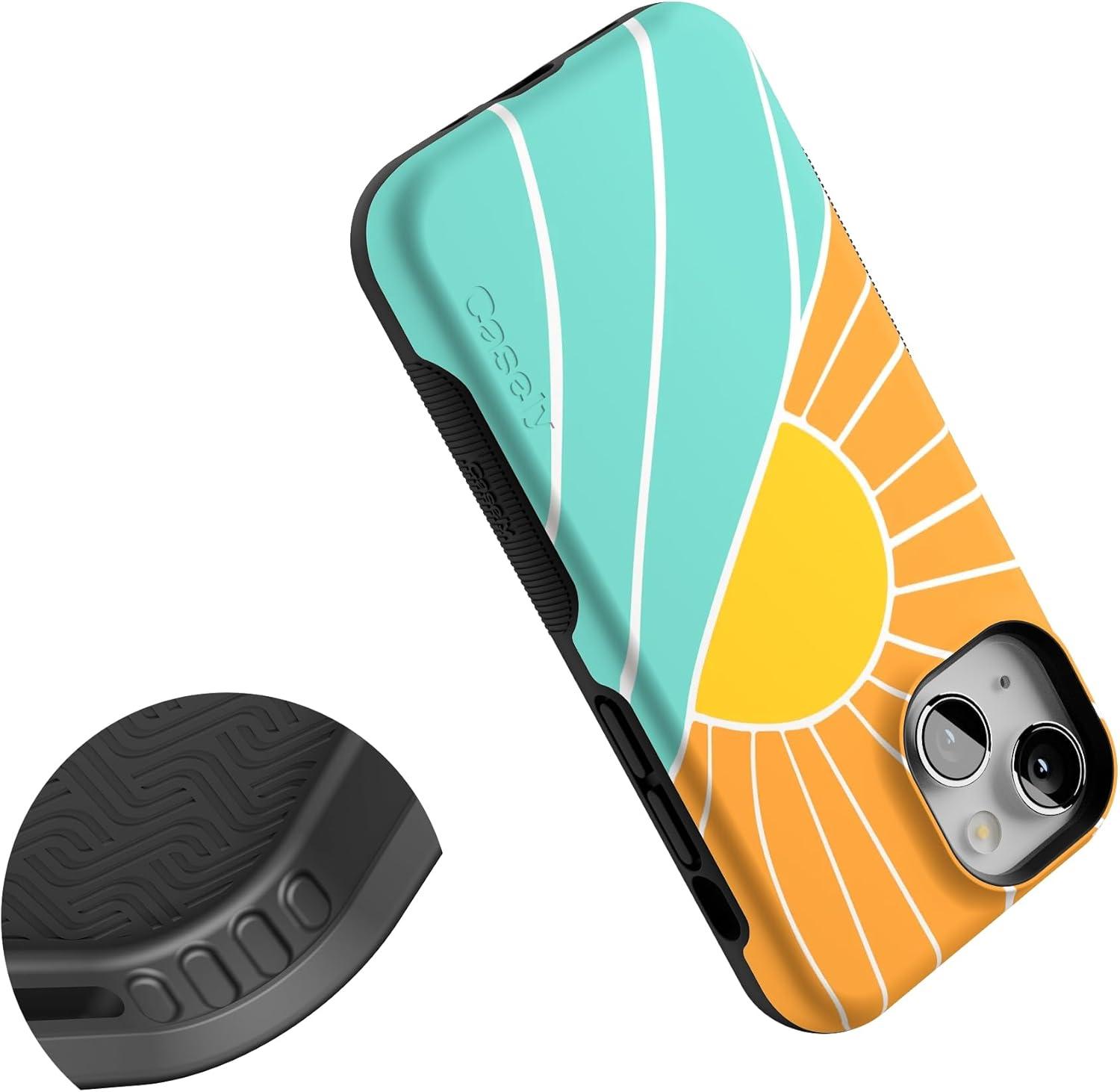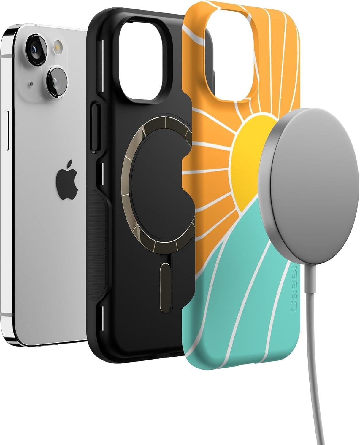 Casely iPhone 13 Mini Case | I’d Pick You | Red Strawberry | Compatible with MagSafe | Bold Protective Design(Waves & Rays | Sunshine)