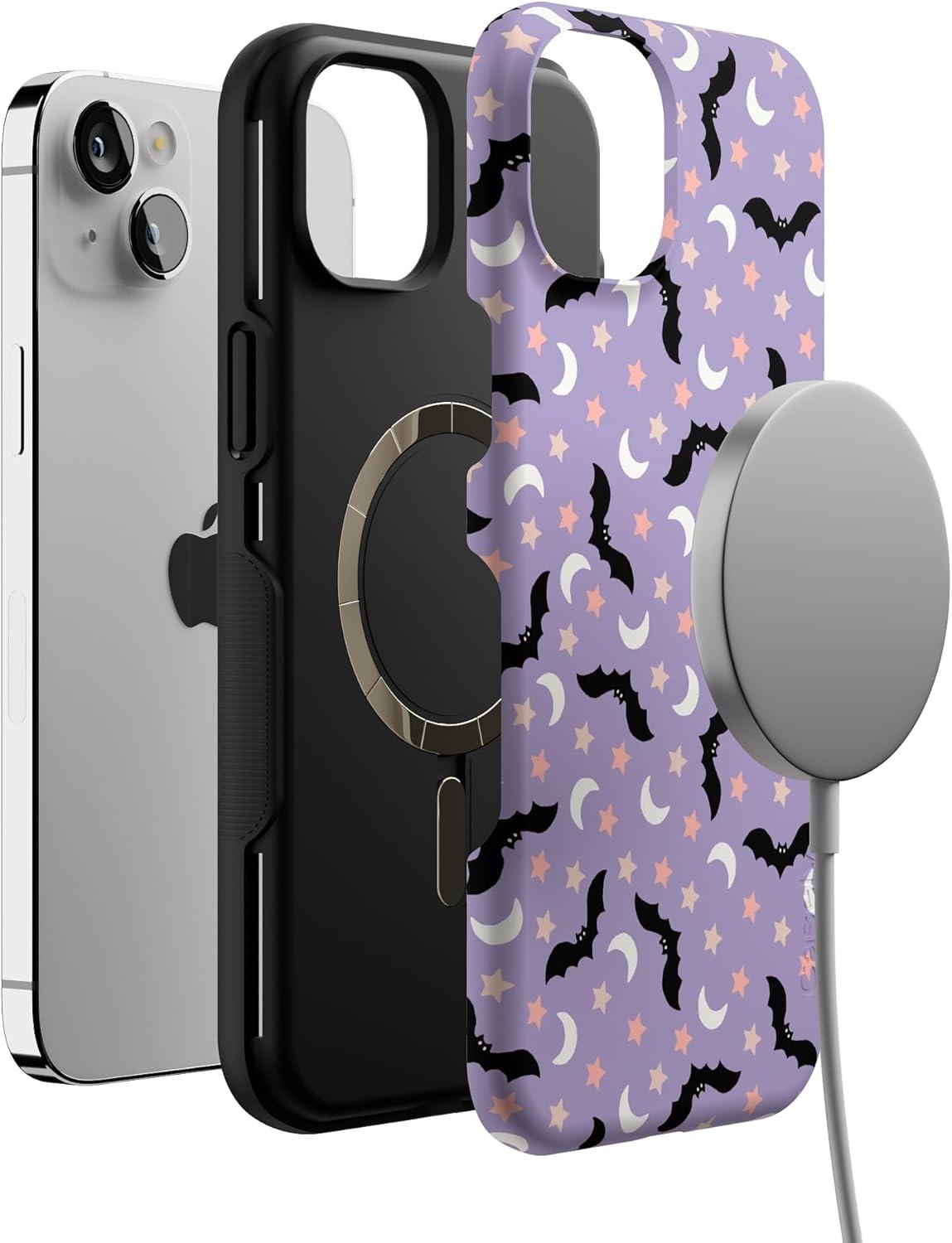 Casely iPhone 13 Mini Case | Midnight Flight | Celestial Bats | Compatible with MagSafe | Bold Protective Design