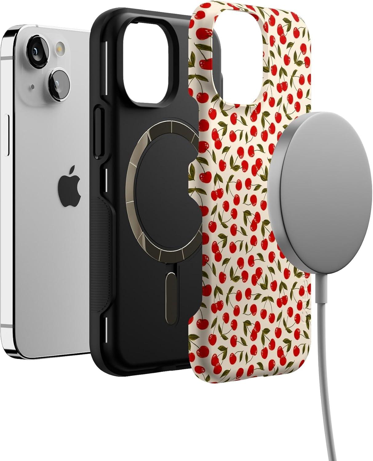 Casely iPhone 13 Mini Case | Not a Phase | Clear Flash Tattoo | Compatible with MagSafe | Classic Ultra Slim Design(Cherry on Top | Red Cherries)