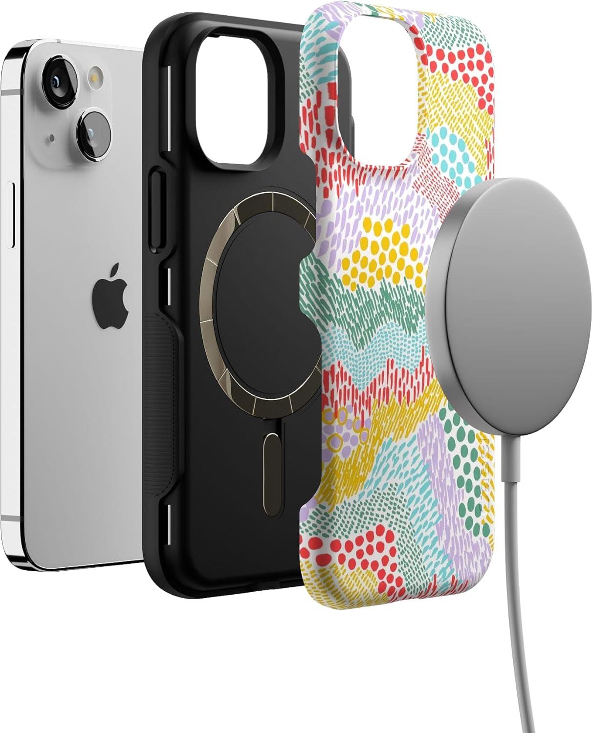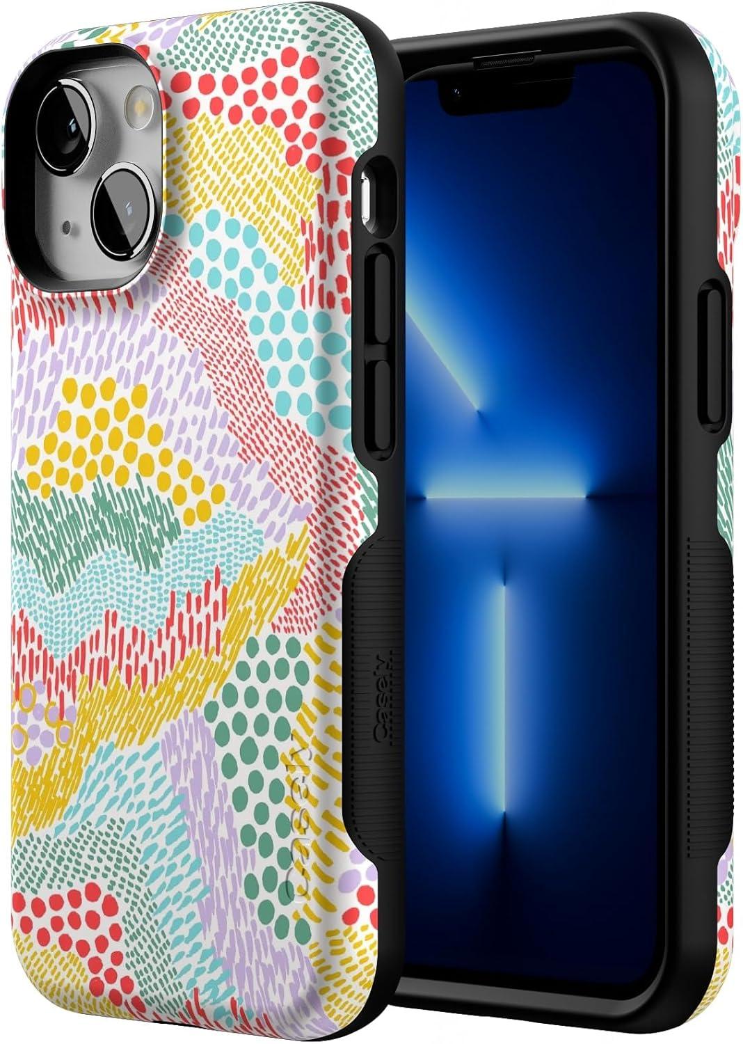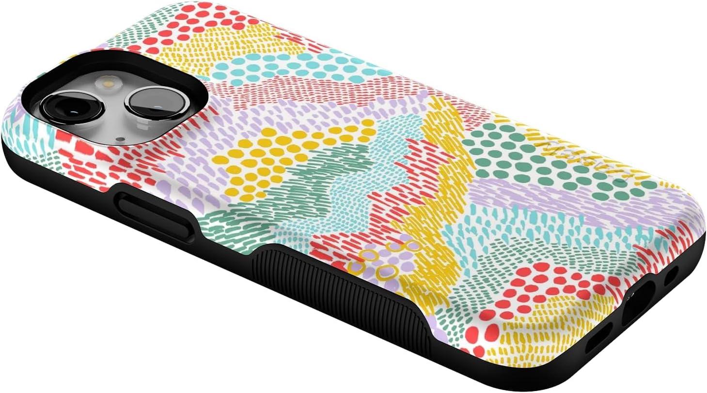 Casely iPhone 13 Mini Case | Not a Phase | Clear Flash Tattoo | Compatible with MagSafe | Classic Ultra Slim Design(Color Me Happy | Pattern Colorblock)