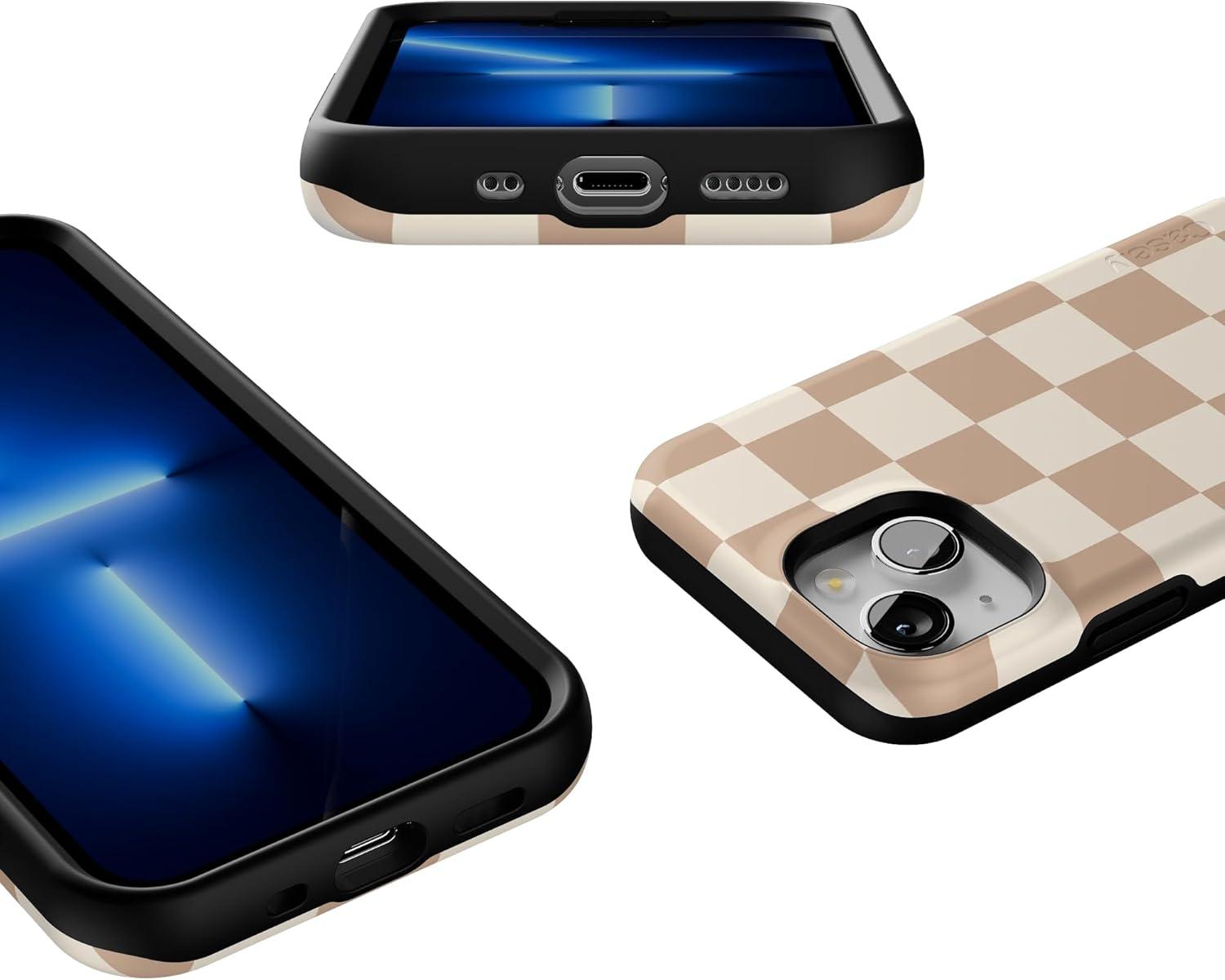 Casely iPhone 13 Mini Case | Not a Phase | Clear Flash Tattoo | Compatible with MagSafe | Classic Ultra Slim Design(Fit Check | Neutral Checkerboard Checkered)