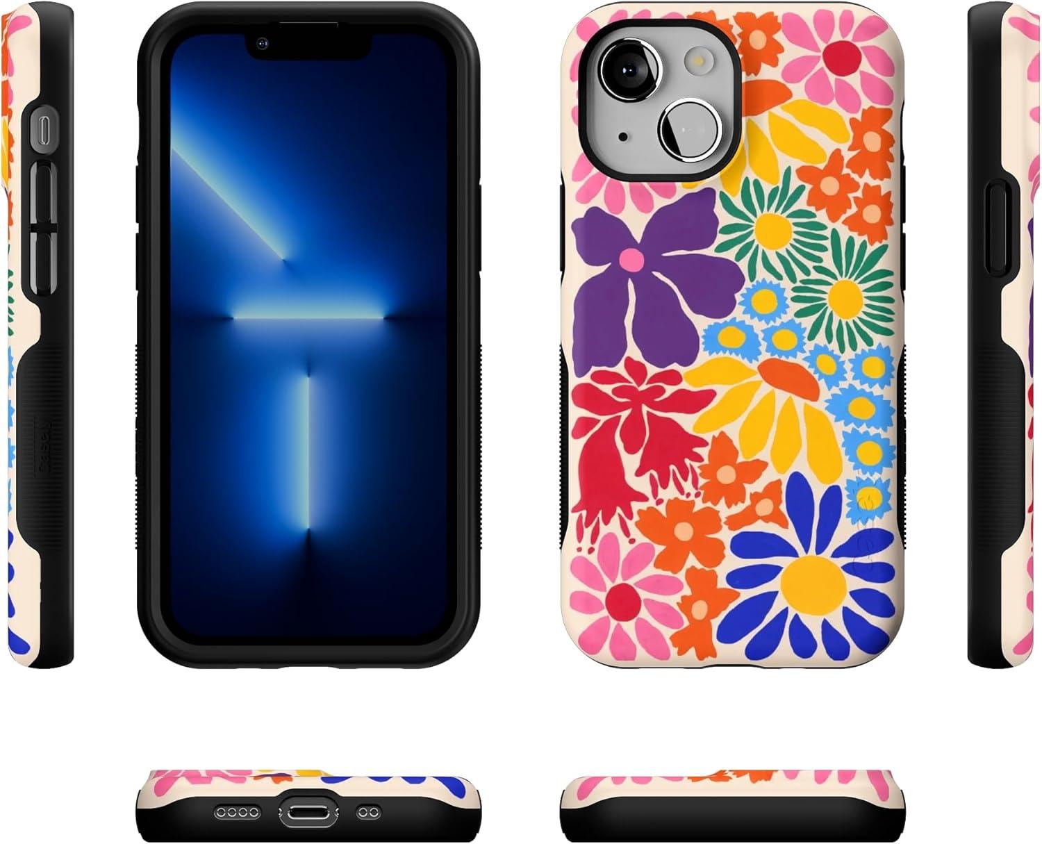 Casely iPhone 13 Mini Case | Not a Phase | Clear Flash Tattoo | Compatible with MagSafe | Classic Ultra Slim Design(Flower Patch | Multi-Color Floral)