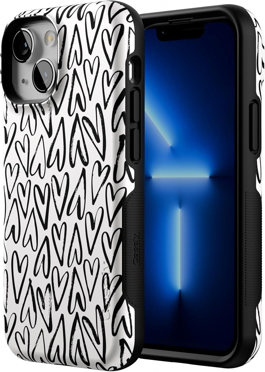 Casely iPhone 13 Mini Case | Not a Phase | Clear Flash Tattoo | Compatible with MagSafe | Classic Ultra Slim Design(Heart Throb | Endless Hearts)