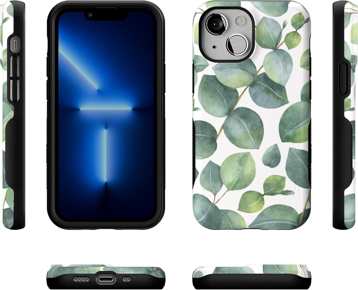 Casely iPhone 13 Mini Case | Not a Phase | Clear Flash Tattoo | Compatible with MagSafe | Classic Ultra Slim Design(Leaf Me Alone | Green Floral Print)