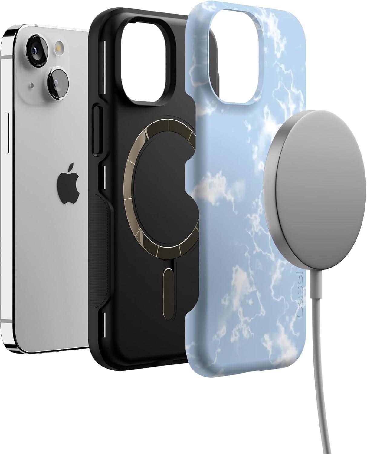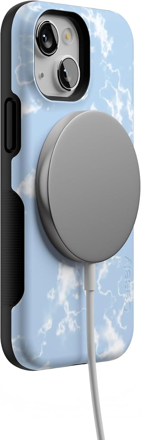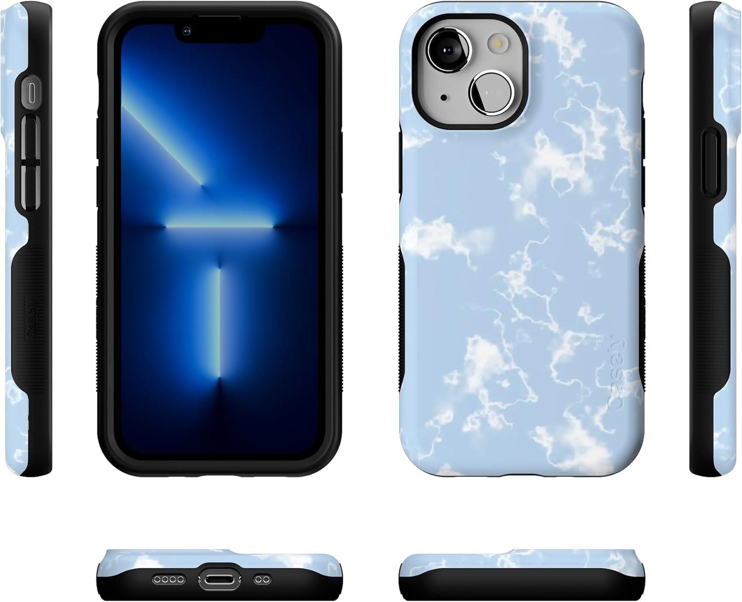 Casely iPhone 13 Mini Case | Not a Phase | Clear Flash Tattoo | Compatible with MagSafe | Classic Ultra Slim Design(Light Blue Skies | Marble Clouds)