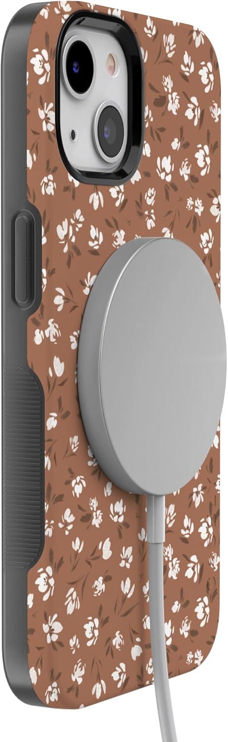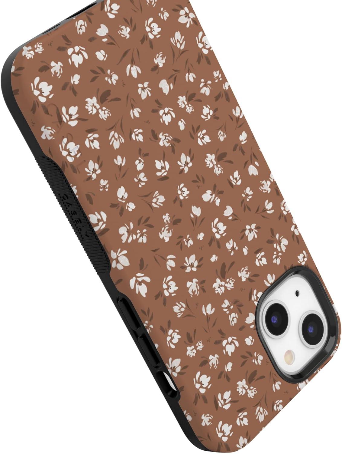 Casely iPhone 13 Mini Case | Not a Phase | Clear Flash Tattoo | Compatible with MagSafe | Classic Ultra Slim Design(Mocha Meadow | Tiny Flowers)