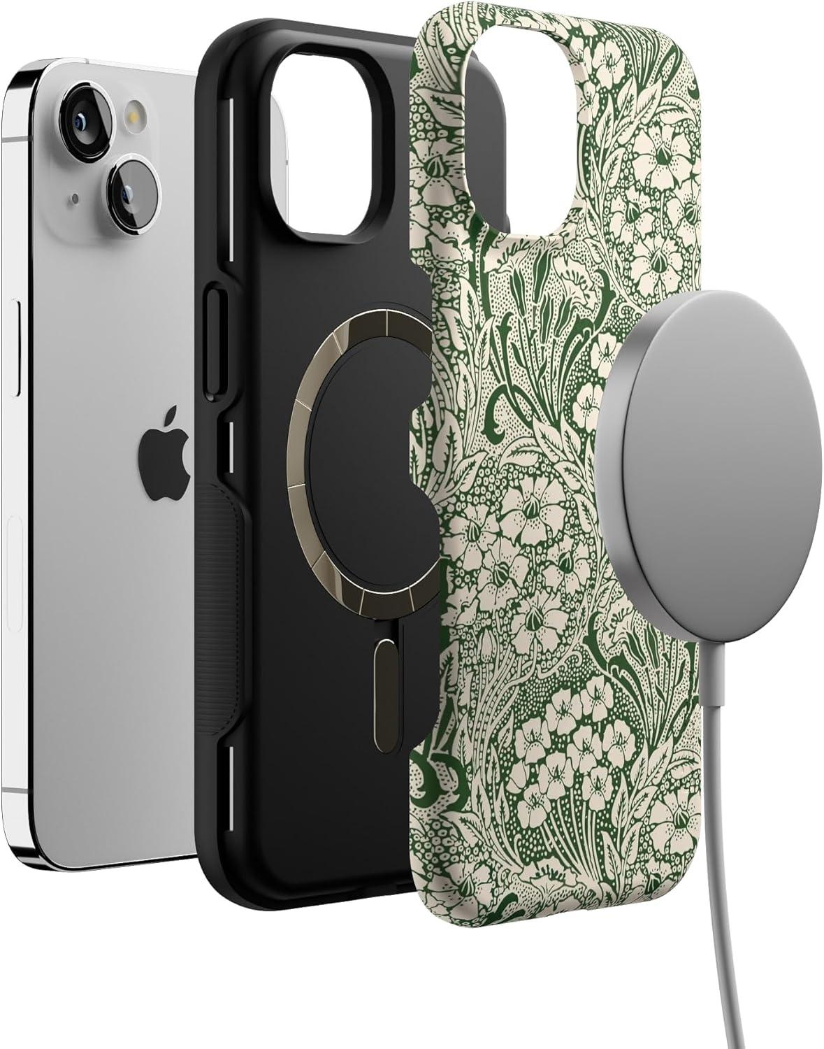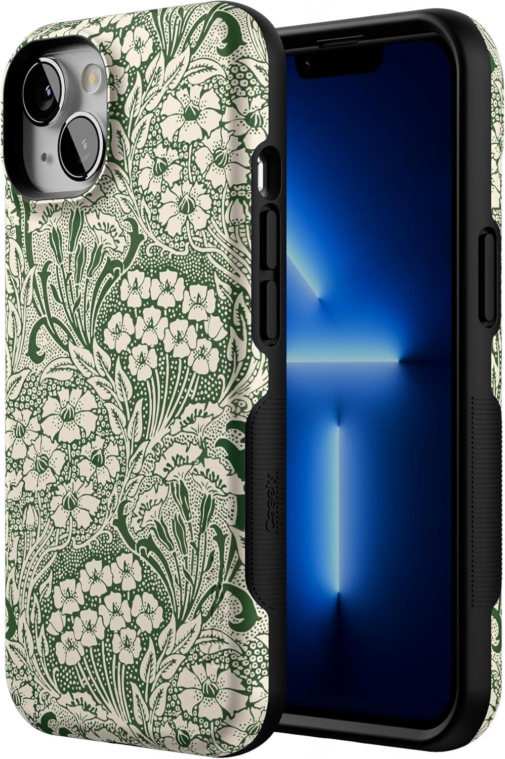 Casely iPhone 13 Mini Case | Not a Phase | Clear Flash Tattoo | Compatible with MagSafe | Classic Ultra Slim Design(Mystic Meadow | Green Gardens)