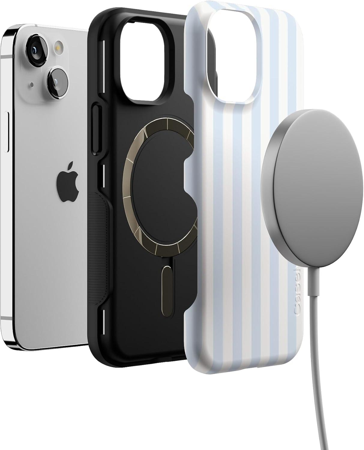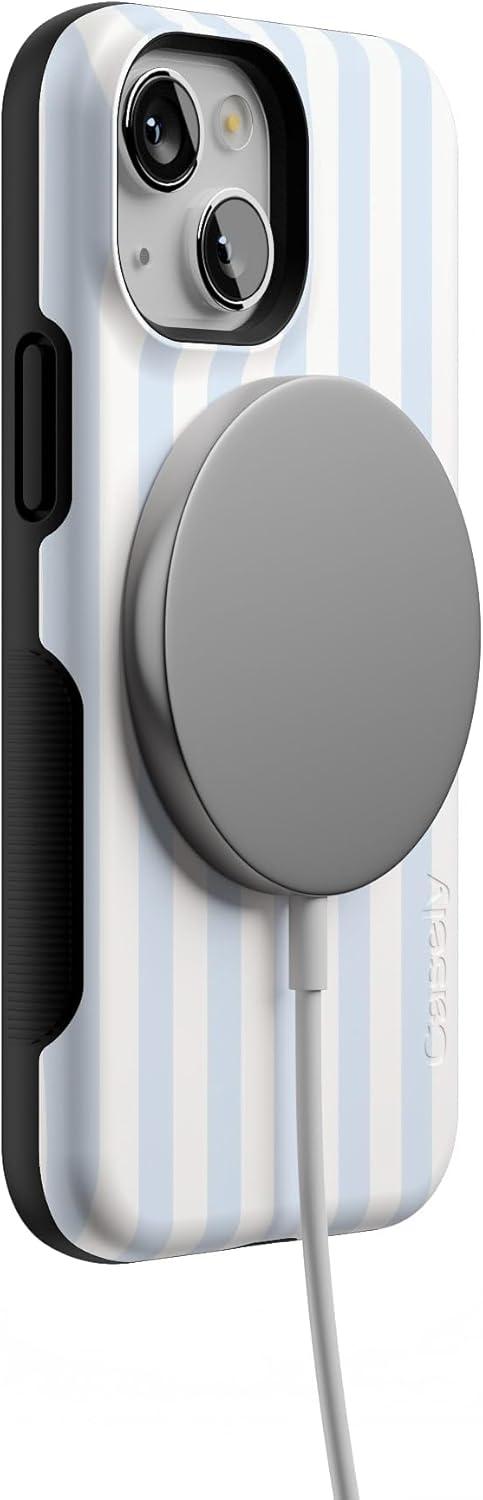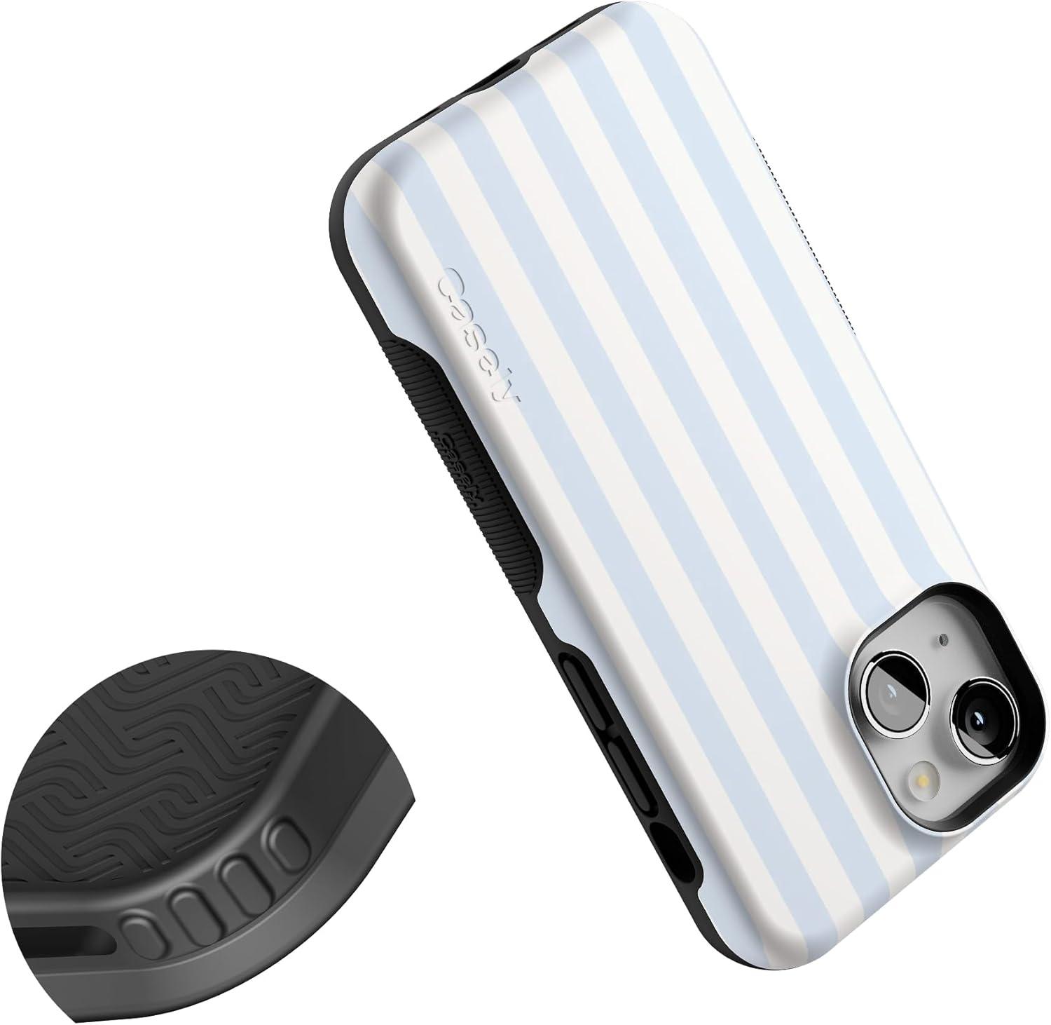 Casely iPhone 13 Mini Case | Not a Phase | Clear Flash Tattoo | Compatible with MagSafe | Classic Ultra Slim Design(Sunday Best | Blue Stripes)