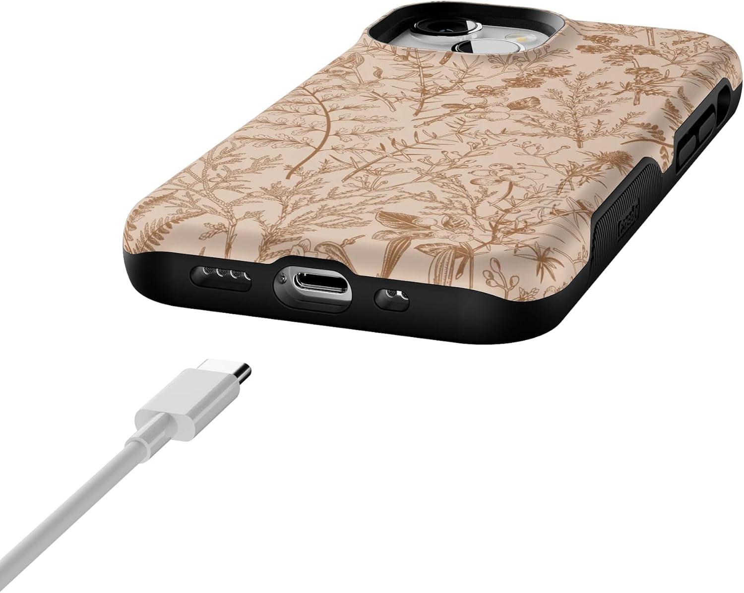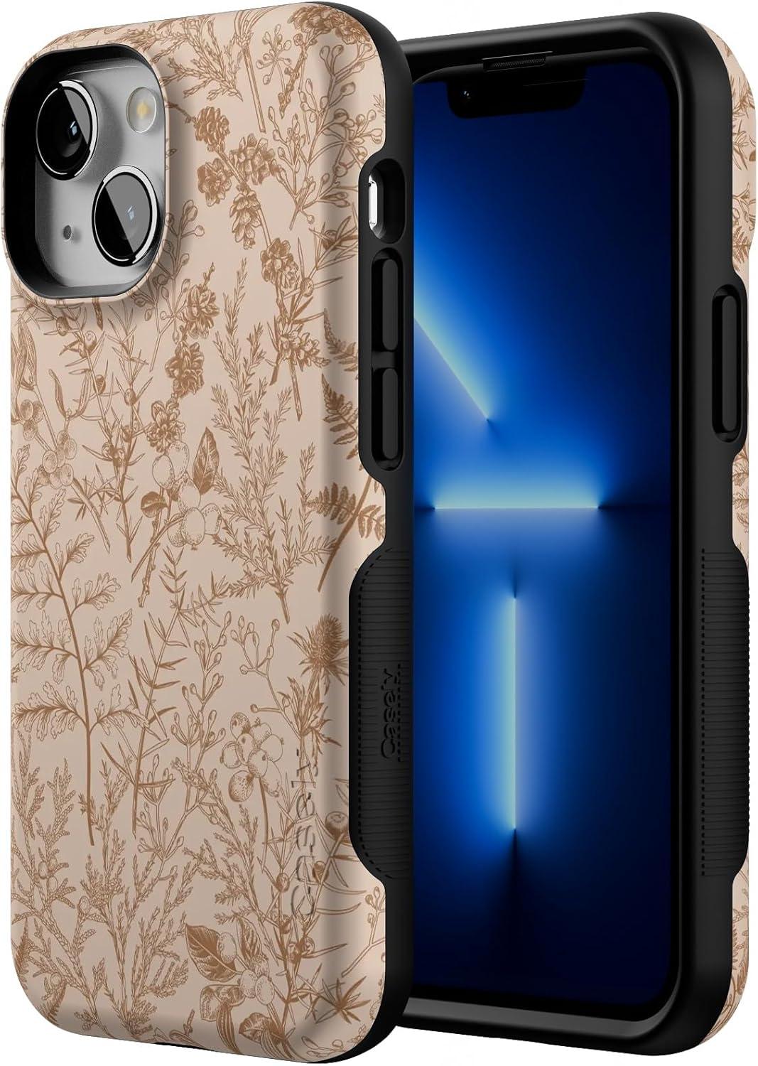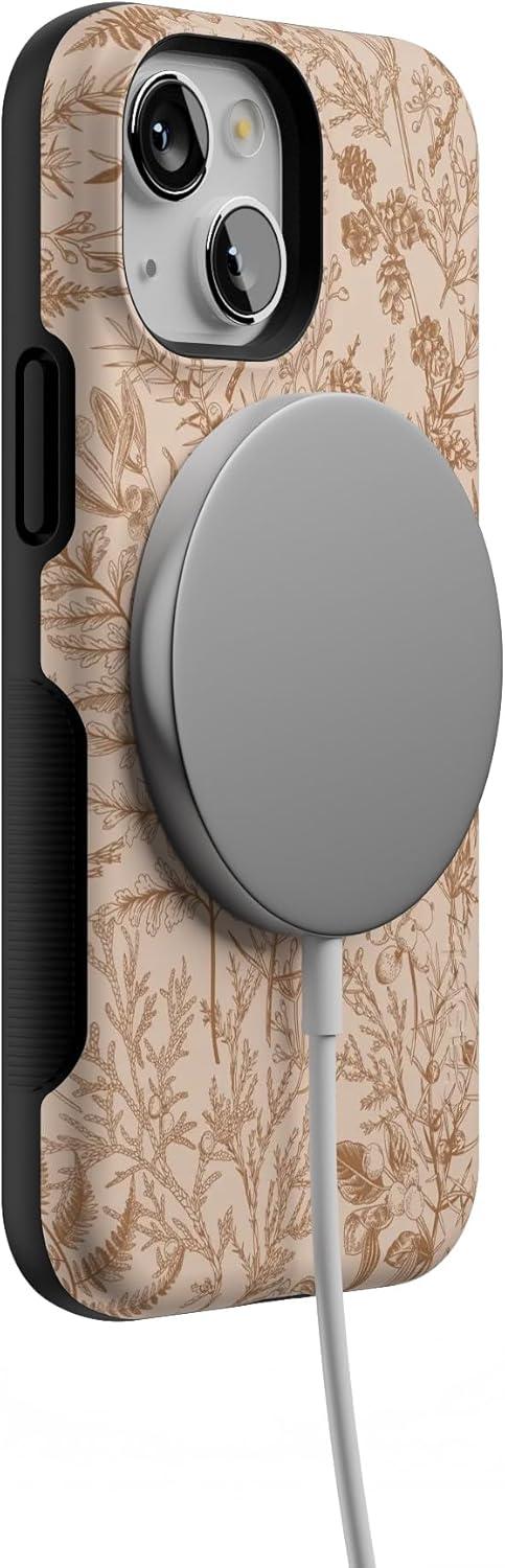 Casely iPhone 13 Mini Case | Pura Vida | Oasis | Bold Protective Design | Compatible with MagSafe(Beige Garden | Neutral Floral)