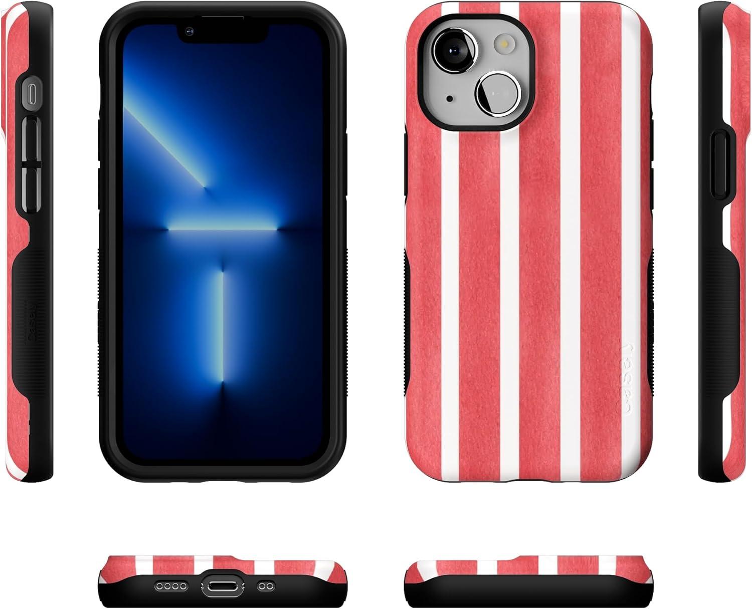 Casely iPhone 13 Mini Case | Pura Vida | Oasis | Bold Protective Design | Compatible with MagSafe(East Coast Summer | Red Stripes)