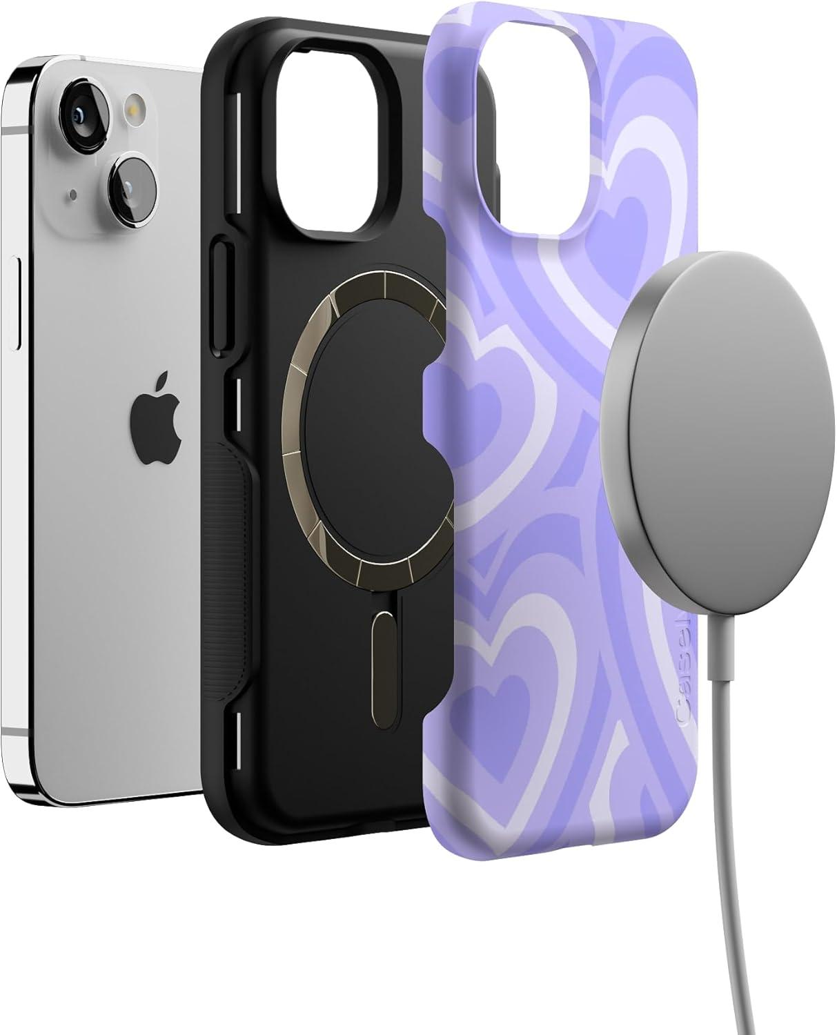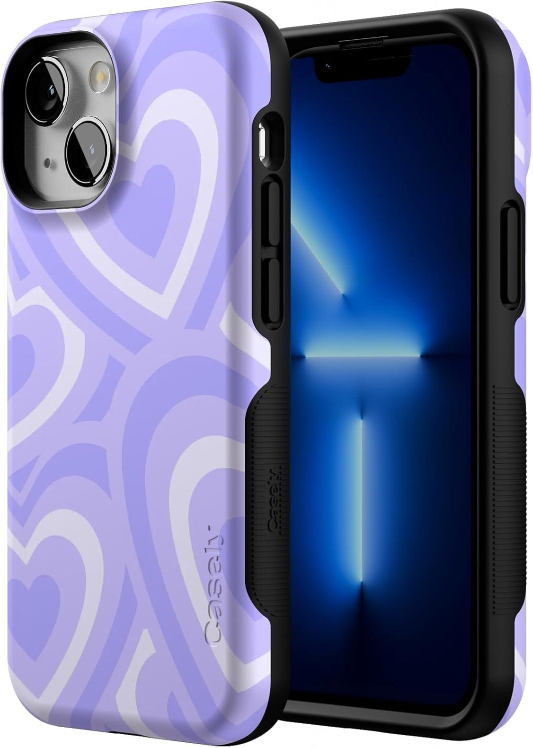 Casely iPhone 13 Mini Case | Pura Vida | Oasis | Bold Protective Design | Compatible with MagSafe(Love Song | Lavender Heart)