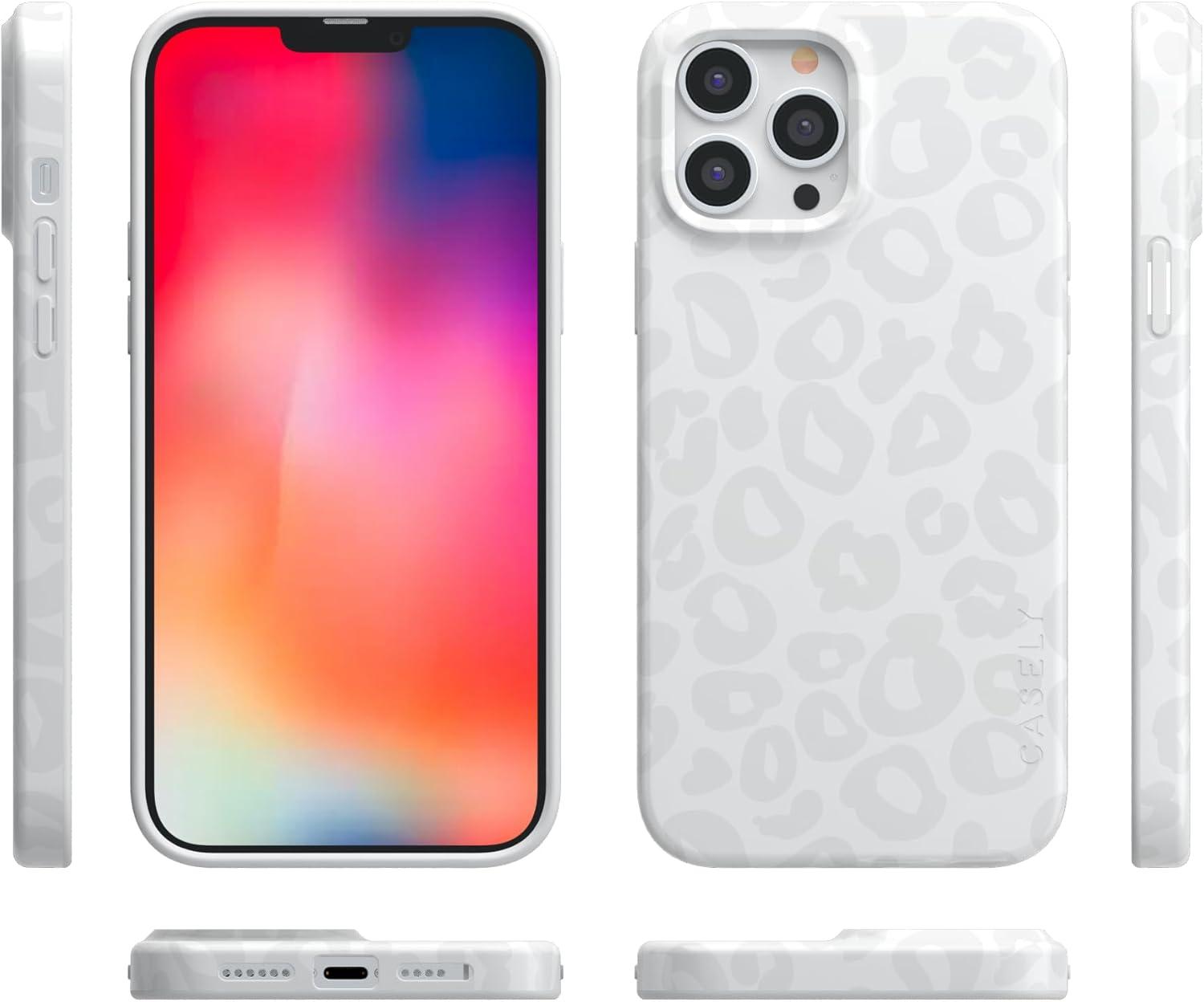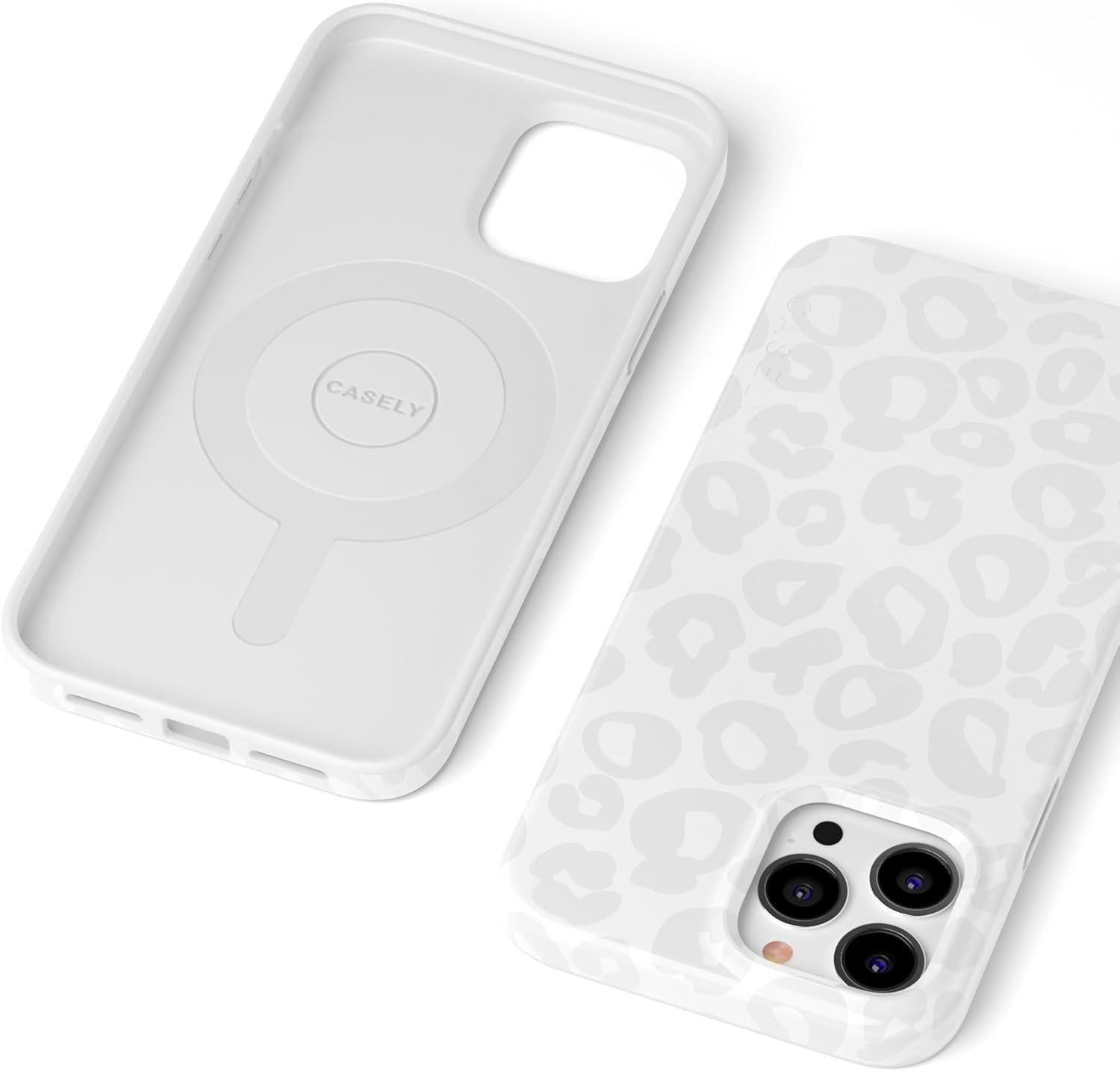 Casely iPhone 13 Pro Case | Compatible with MagSafe | Flower Patch | Girly Floral Case(Into the Wild | White Snow Leopard)