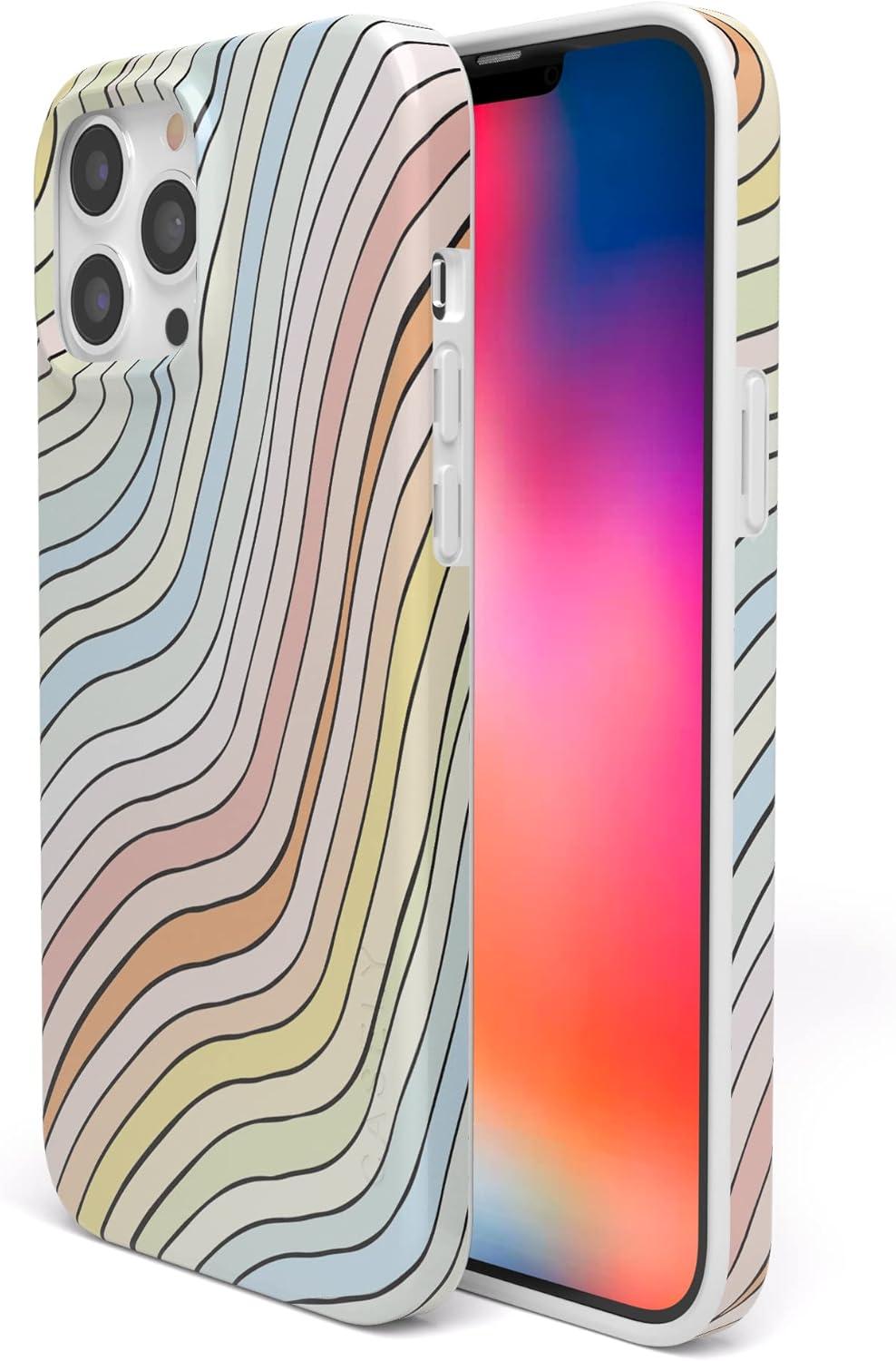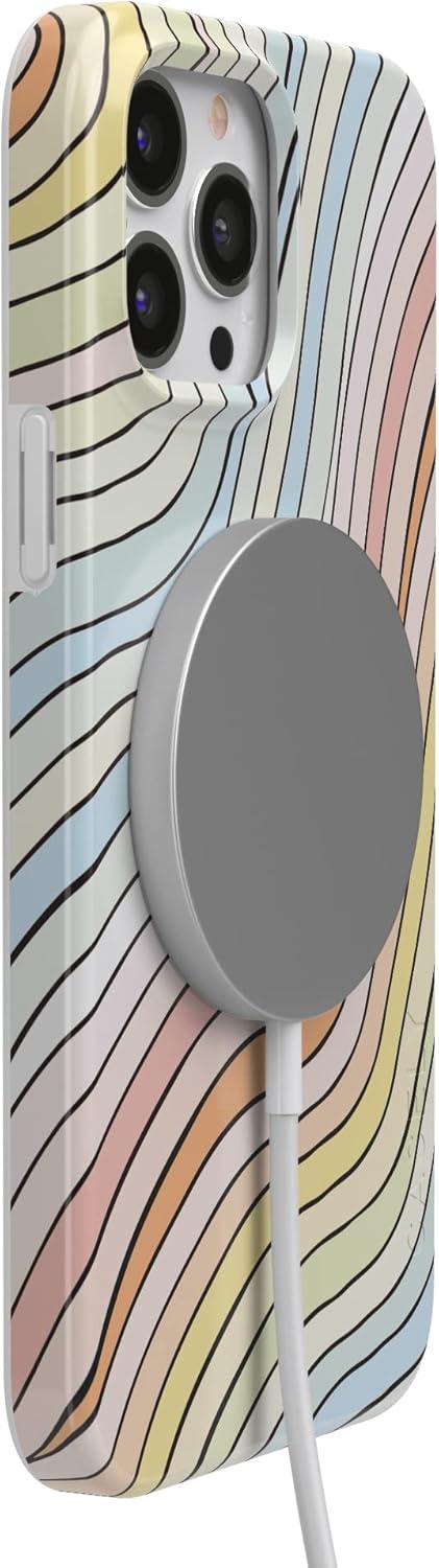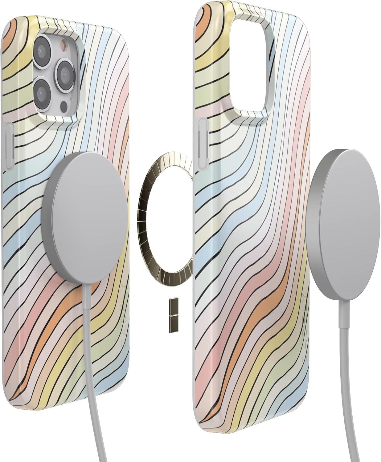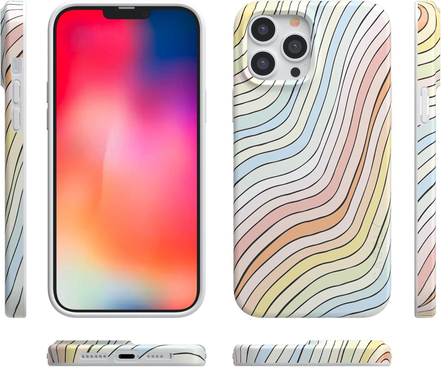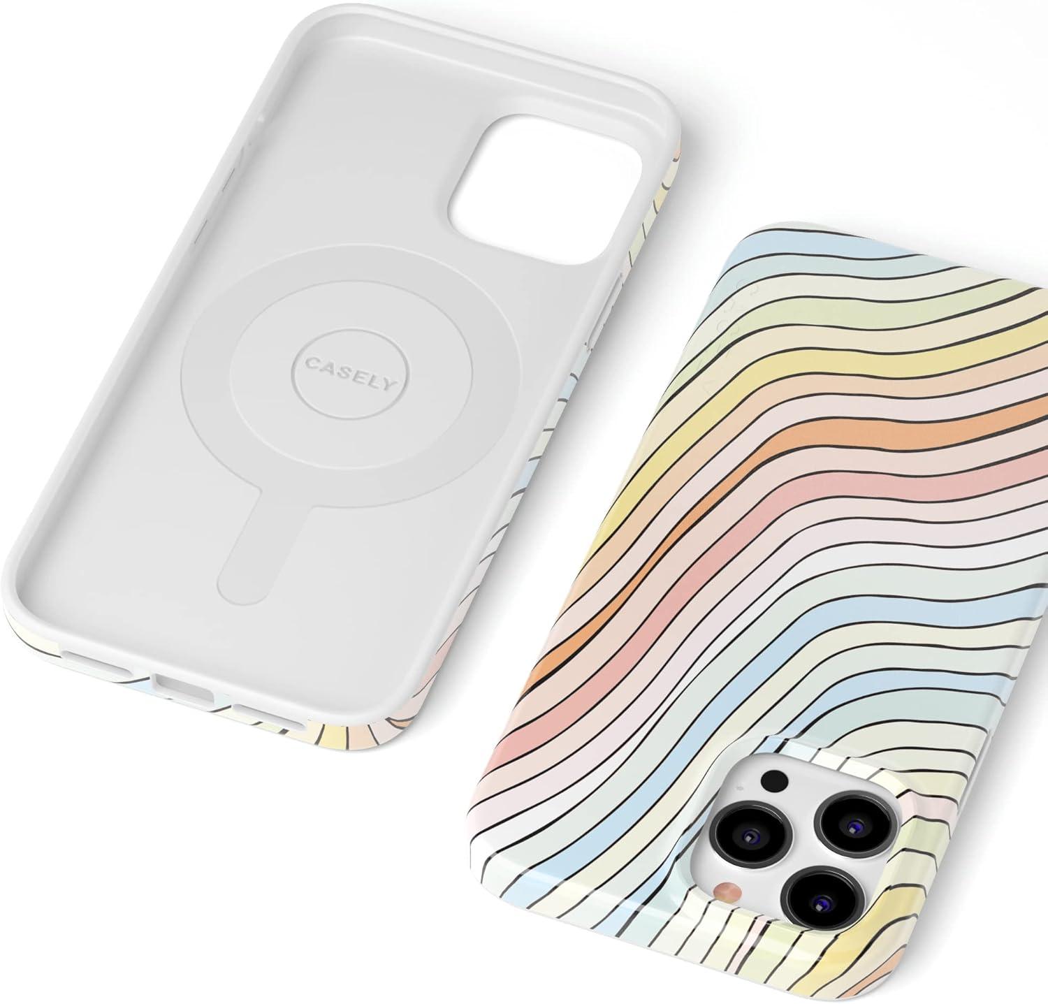 Casely iPhone 13 Pro Case | Compatible with MagSafe | Flower Patch | Girly Floral Case(Ride The Wave | Pastel Rainbow Lined)
