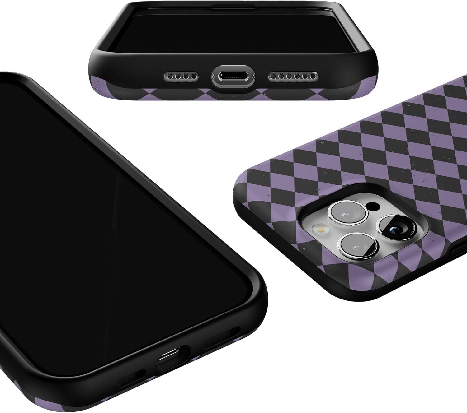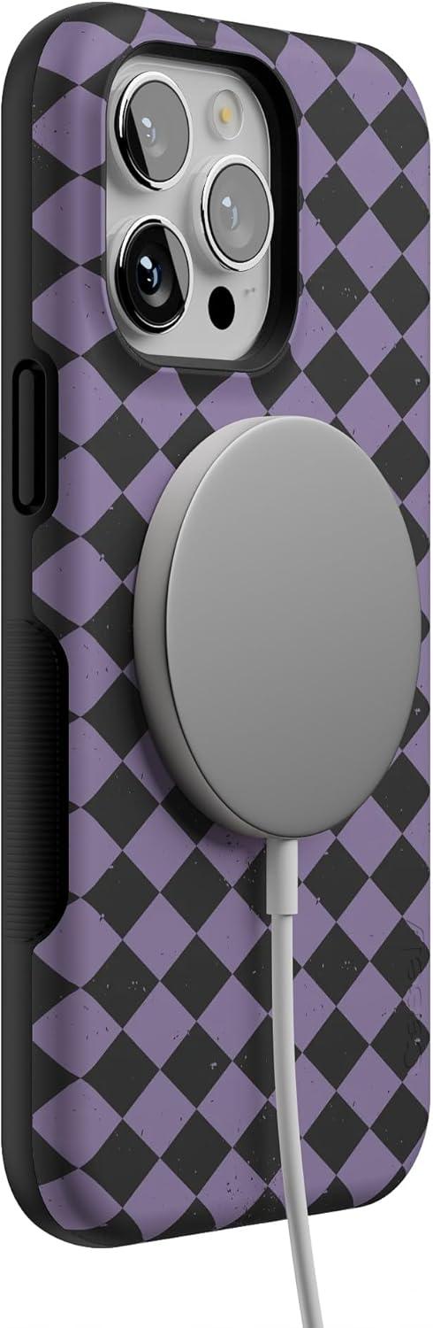 Casely iPhone 13 Pro Case | Harlequin Midnight Diamond | Black and Purple | Bold Protective Design | MagSafe Compatible Design