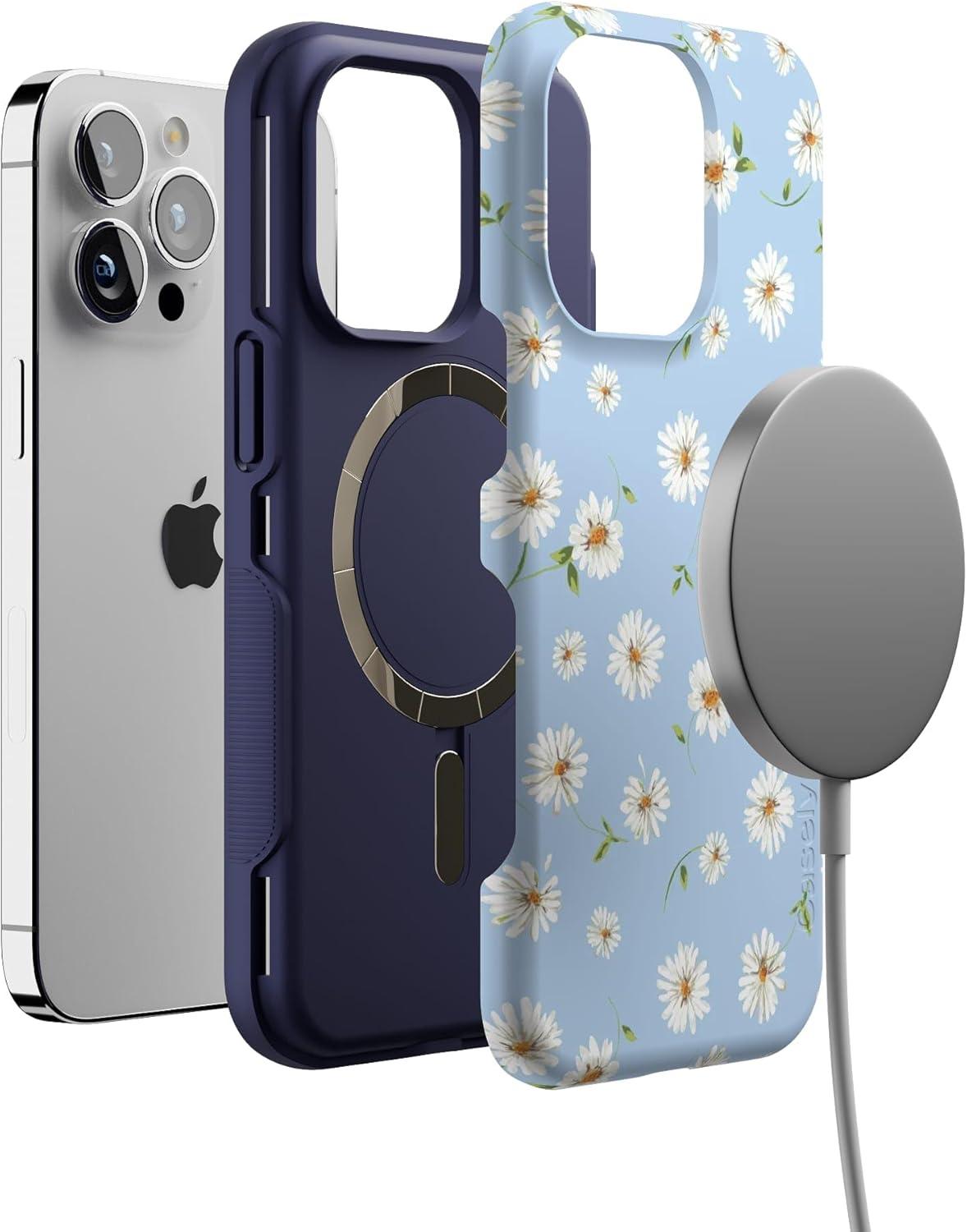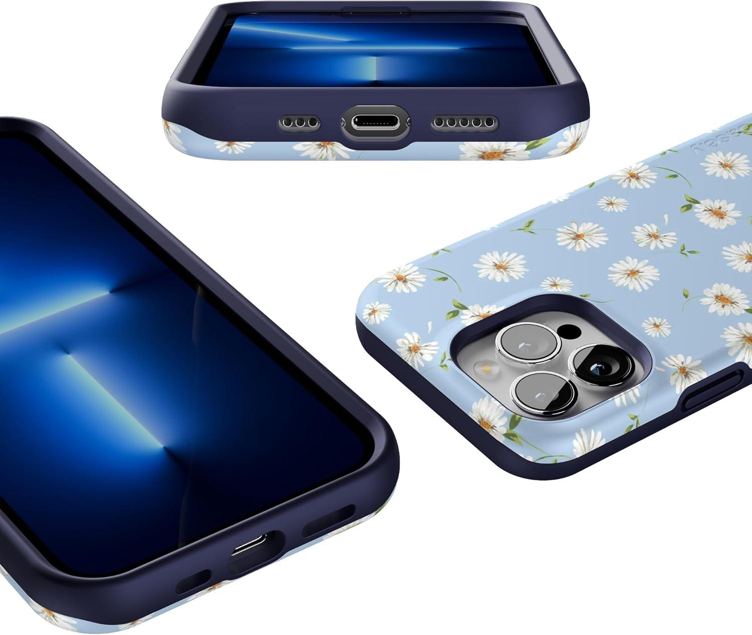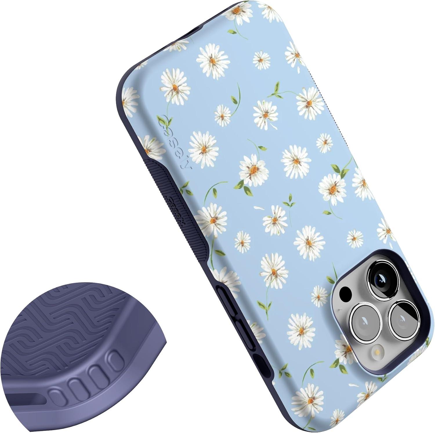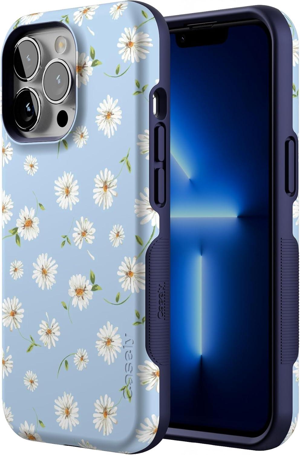 Casely iPhone 13 Pro Case | Into The Wild | Black Leopard | Bold Protective Design | MagSafe Compatible Design(Daisy Daydream | Baby Blue Floral)