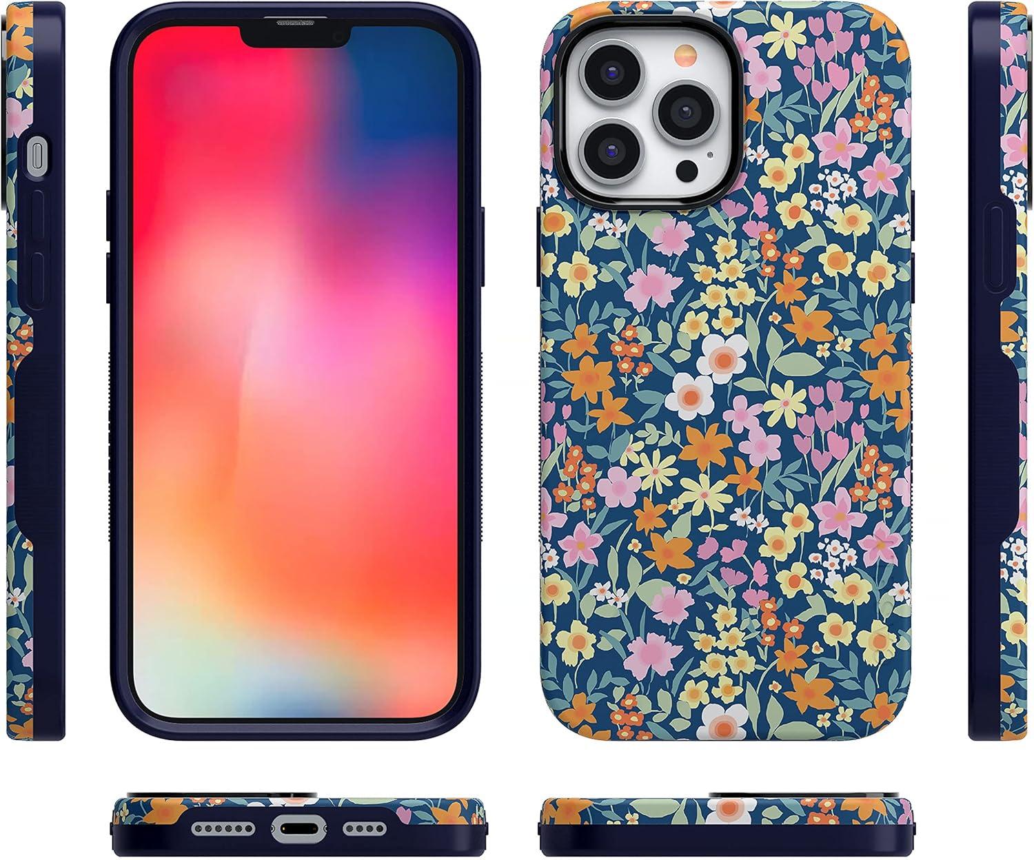 Casely iPhone 13 Pro Case | Into The Wild | Black Leopard | Bold Protective Design | MagSafe Compatible Design(Full Bloom | Navy Floral)