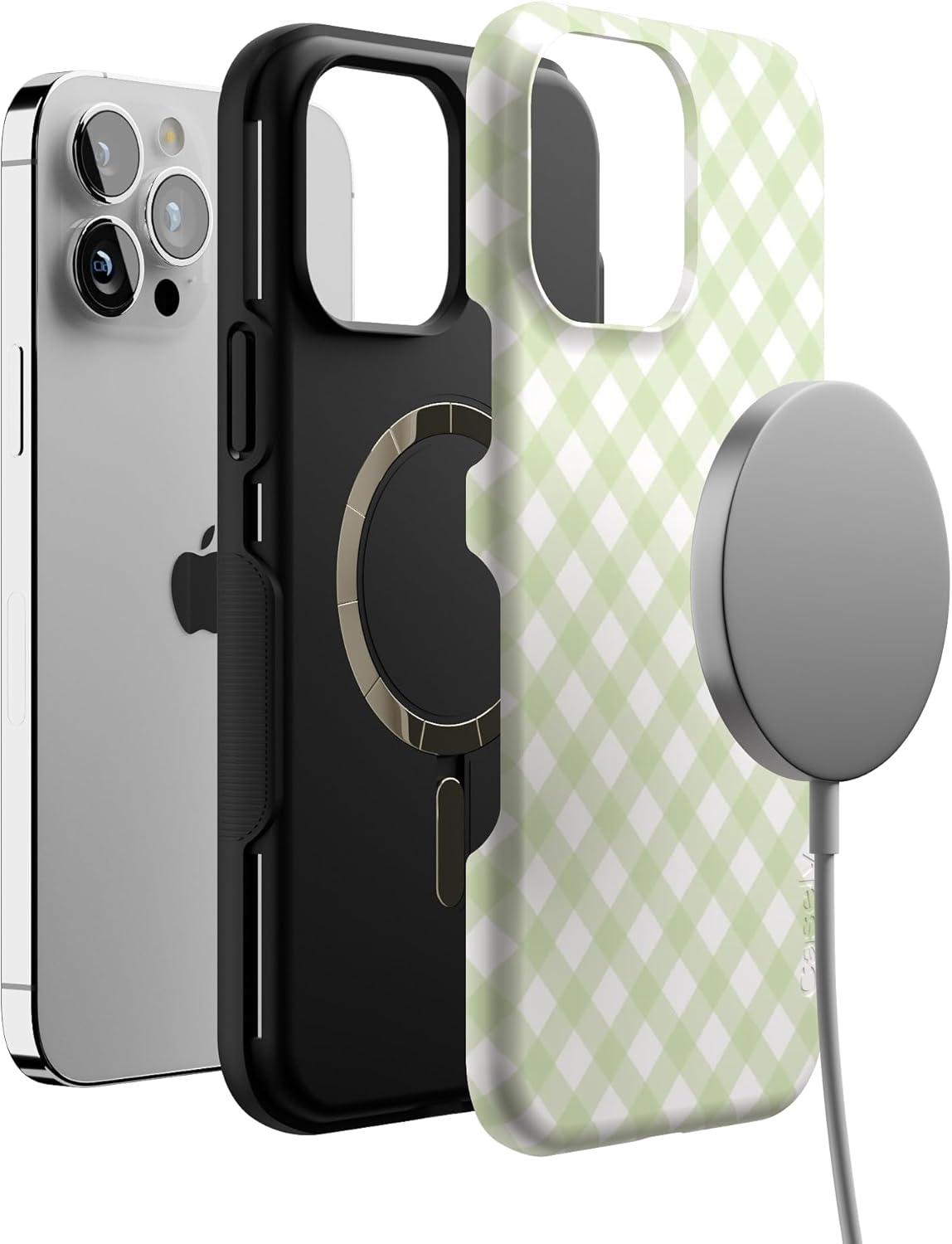 Casely iPhone 13 Pro Case | Into The Wild | Black Leopard | Bold Protective Design | MagSafe Compatible Design(Mint Lattice | Sunday Best | Green Gingham)